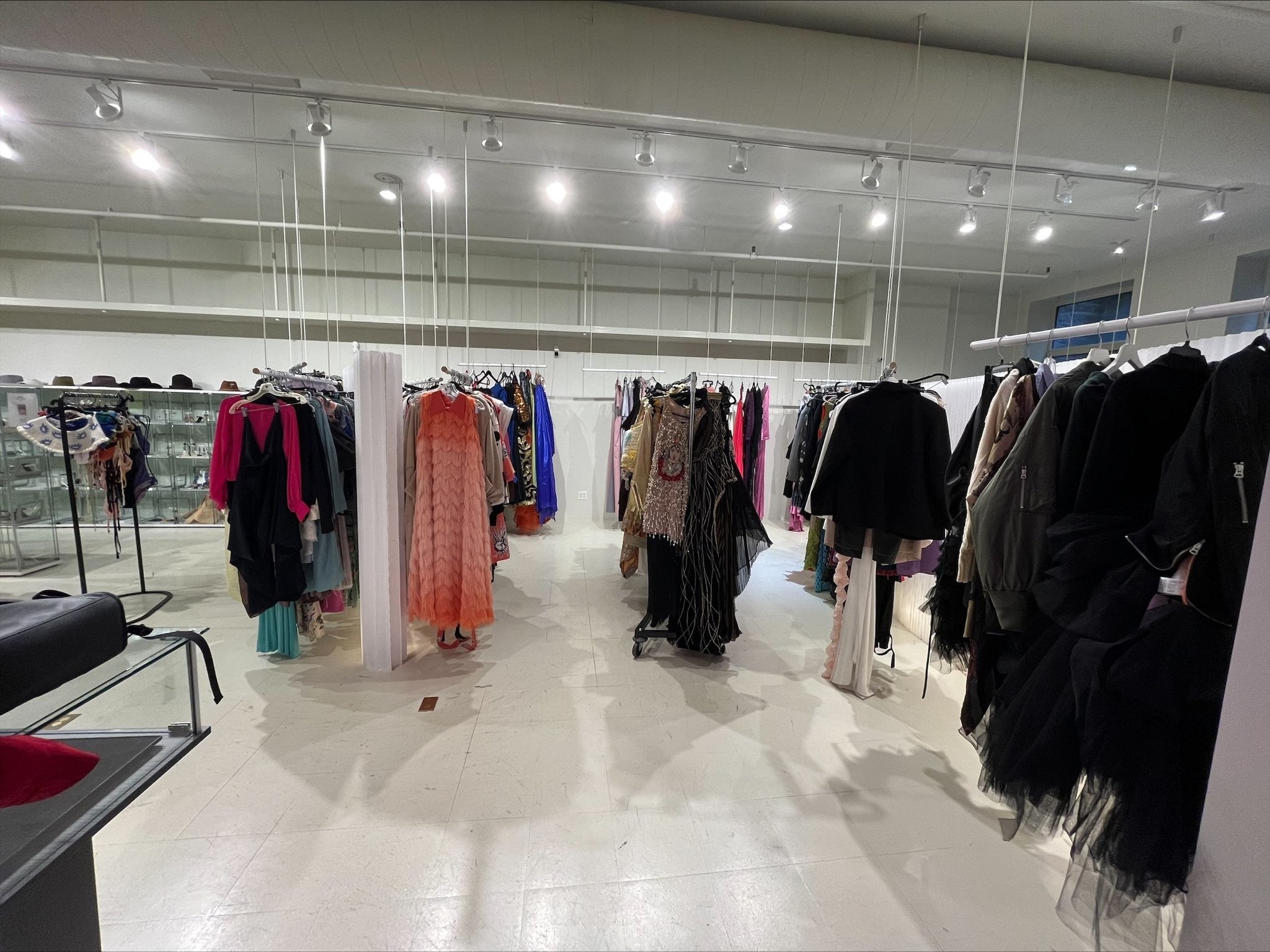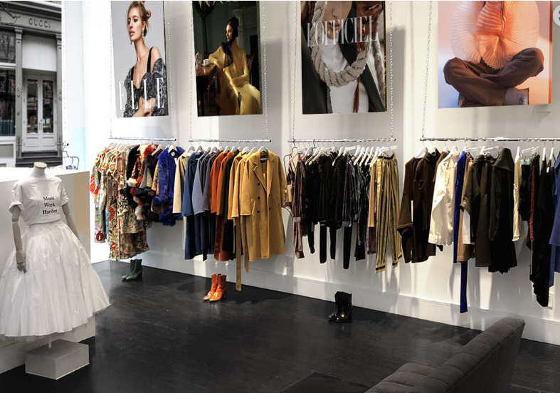 Flying Soloでは、アートやファッションの最新トレンドを発信するプレスショールームも完備。限定商品や新進気鋭のデザイナーのコレクションをはじめとした、雑誌などのメディアにも映える特別なファッションがずらりと展示されています。