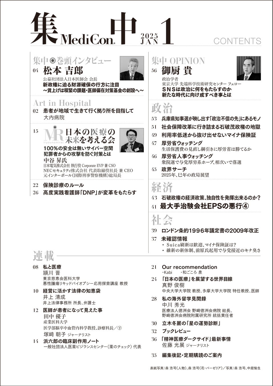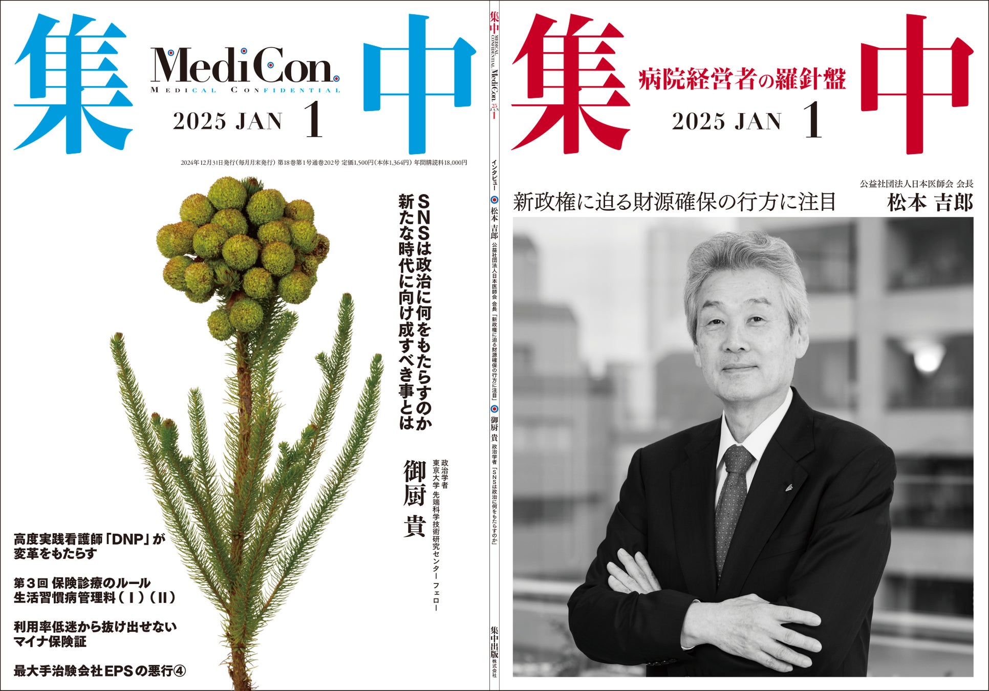 医療情報誌 月刊『集中』2025年1月号 巻頭インタビュー 松本吉郎・公益社団法⼈⽇本医師会 会⻑/集中OPINION 御厨 貴・東京大学 先端科学技術研究センター フェロー 他