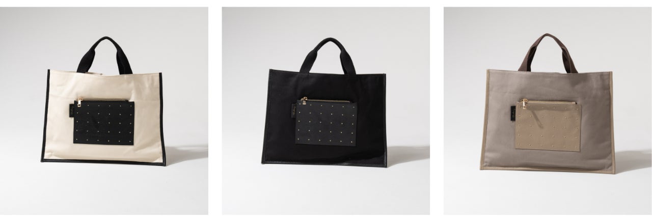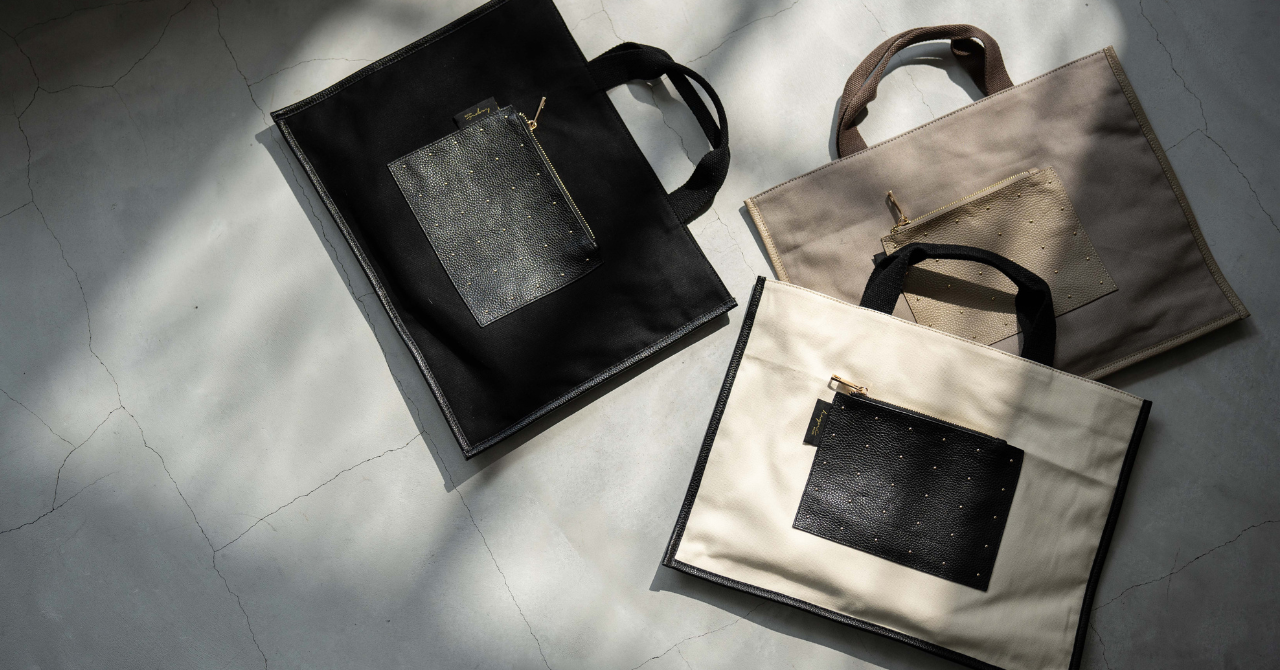 【HAYNI】上品なゴールドドットのデザインが新登場。本革ポケットをあしらった「多機能キャンバスバッグ」6/24より発売開始。