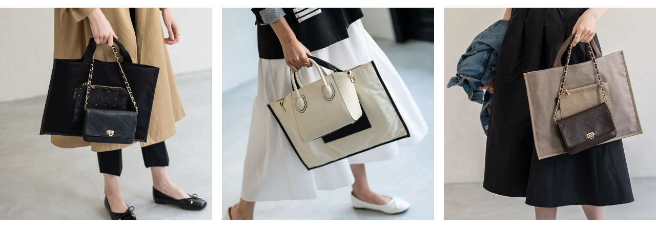 すっきり美しいシルエットなので、ぜひ、他のバッグとの組み合わせコーデもお楽しみください。