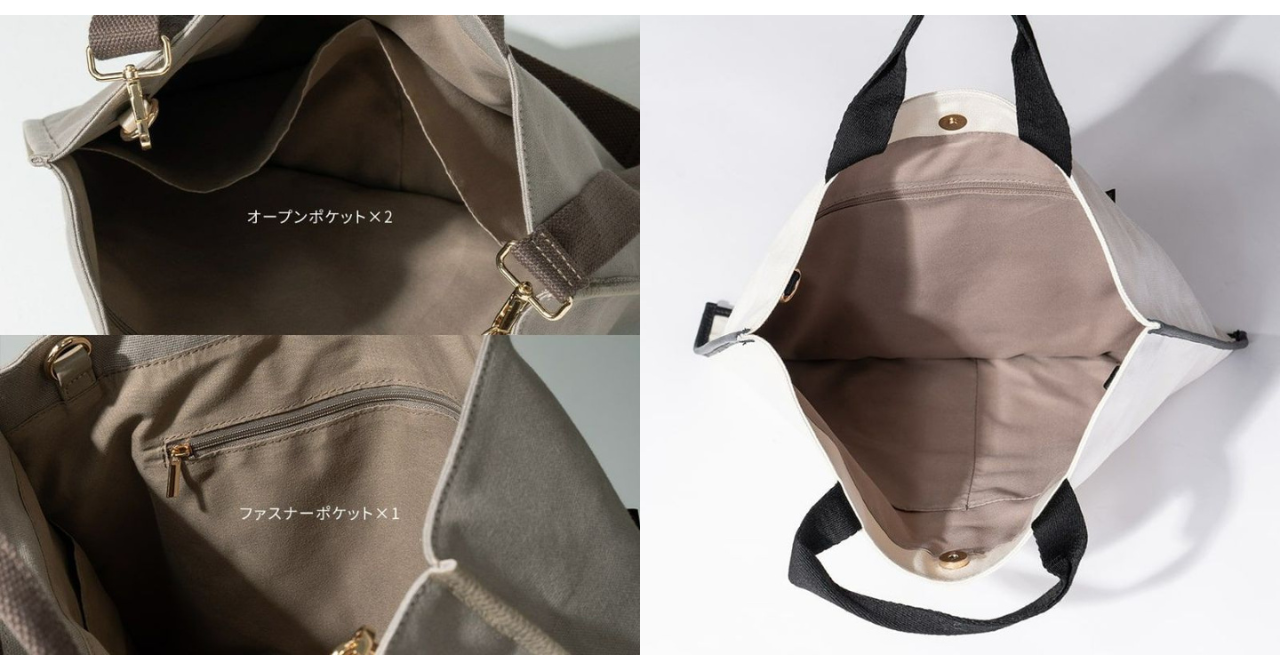 内ポケット:オープンポケット×2・ファスナーポケット×1