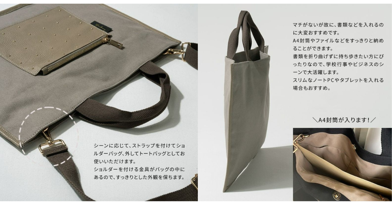 「おとなのためのレッスンバッグ」のコンセプトで誕生したキャンバストートバッグ『レスチェ』。