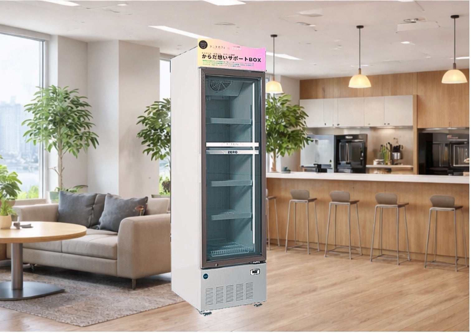 フードロス削減を目的としたサステナ自販機を展開し、フードロスとCO2削減に取り組むZERO株式会社(本社:東京都台東区、代表取締役:沖杉 大地、四辻 弘樹、以下「ZERO」)は、株式会社タニタ食堂(本社:東京都板橋区、代表取締役社長 上木知規)と連携し、企業向けに冷凍自動販売機型の置き社食サービス「からだ想いサポートBOX」の提供を開始しました。