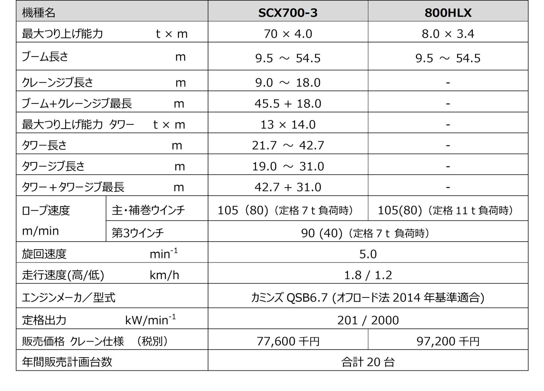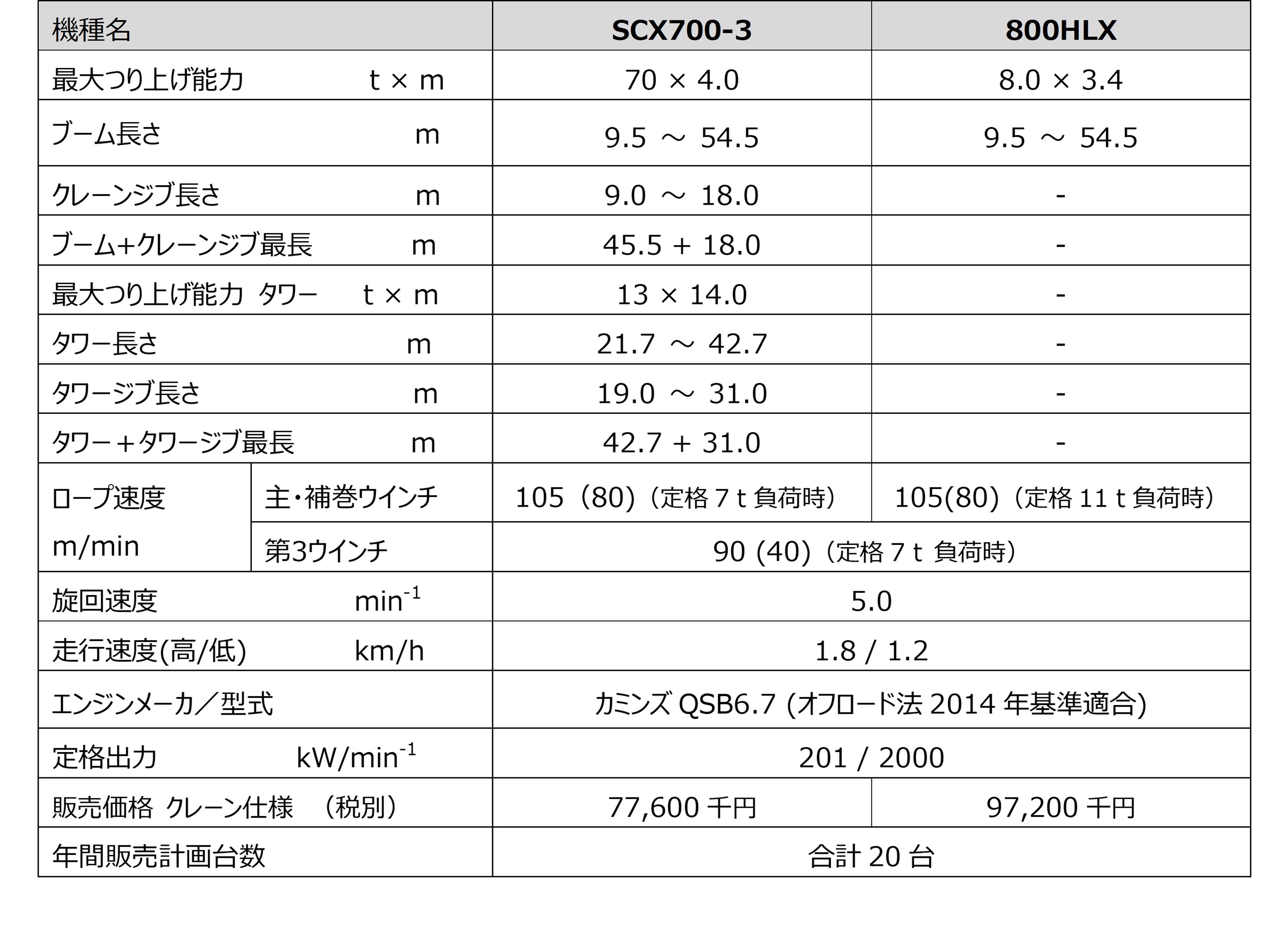 『SCX700-3/800HLX』 マイナーチェンジ機の販売開始について