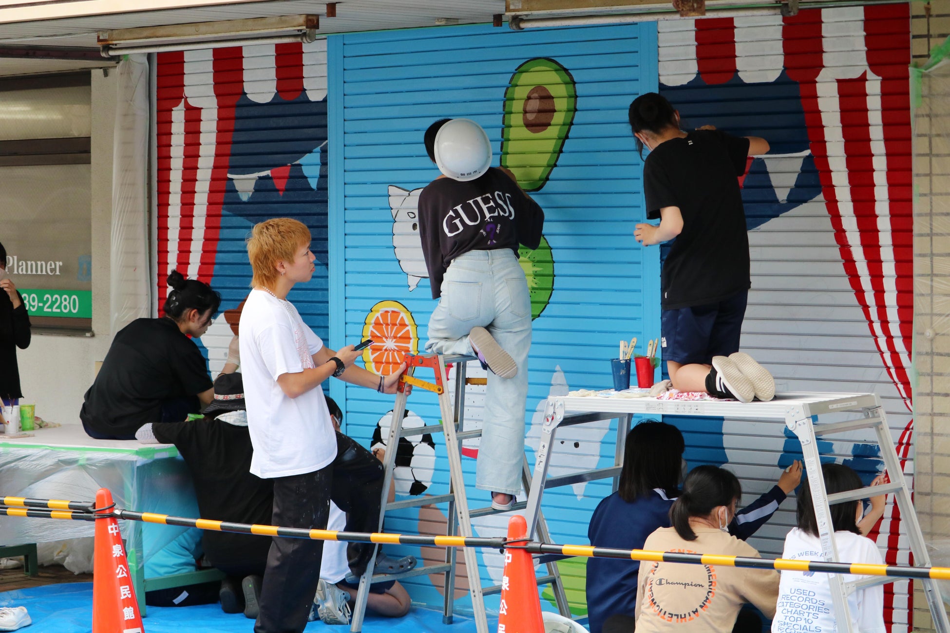 地区の住民と市内の高校生が協力し、空き店舗のシャッターを活用したアート作品を製作することで街の活性化を目指しています。