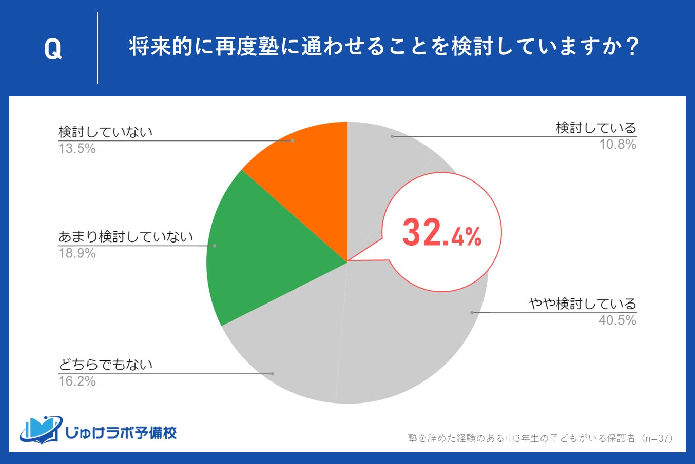 一方で32.4%が再通塾を「あまり検討していない」と回答