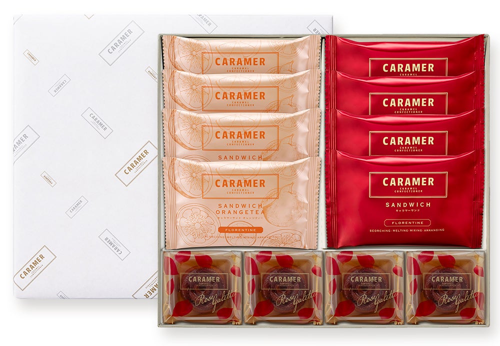 (キャラマーサンド 、キャラマーサンド オレンジティー、ローズガレット各4個)
