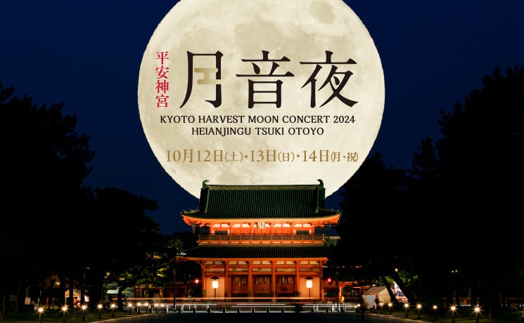 京都東山の空に燦然と輝く名月のもと、「平安神宮 月音夜(つきおとよ) ~京都名月コンサート2024~」を今年も開催いたします。2024年10月12日(土)、13日(日)、14日(月・祝)の3日間、京都・平安神宮に特設ステージを設置します。個性豊かな豪華アーティストによる、優雅で浪漫あふれる音楽をお楽しみください。また、コンサートだけでなく京会席もお楽しみいただける「食事付きプラン」のご用意もございます。