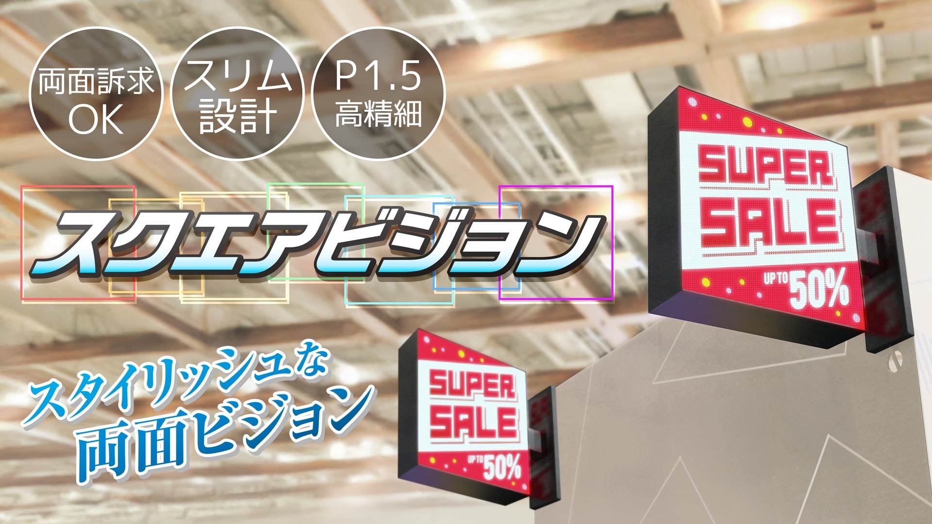 この度、株式会社インターコスモスより、両面仕様の正方形型LEDビジョン【スクエアビジョン】が新発売されました。