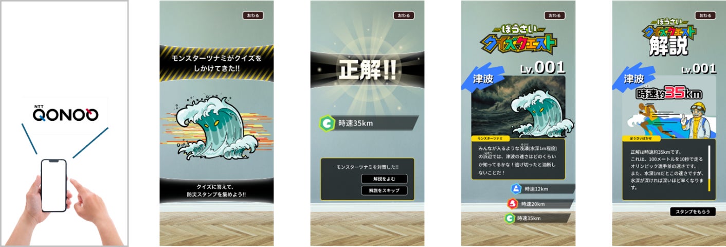 防災知識を楽しく学べる!東京海上日動とNTTコノキュー AR防災学習コンテンツ「ぼうさいクイズクエスト!」を開発し、自治体防災イベントに出展