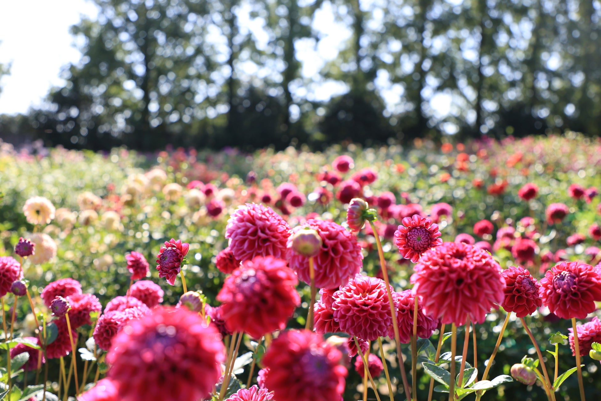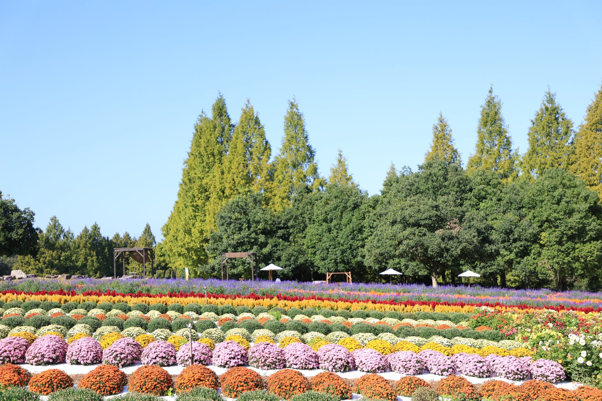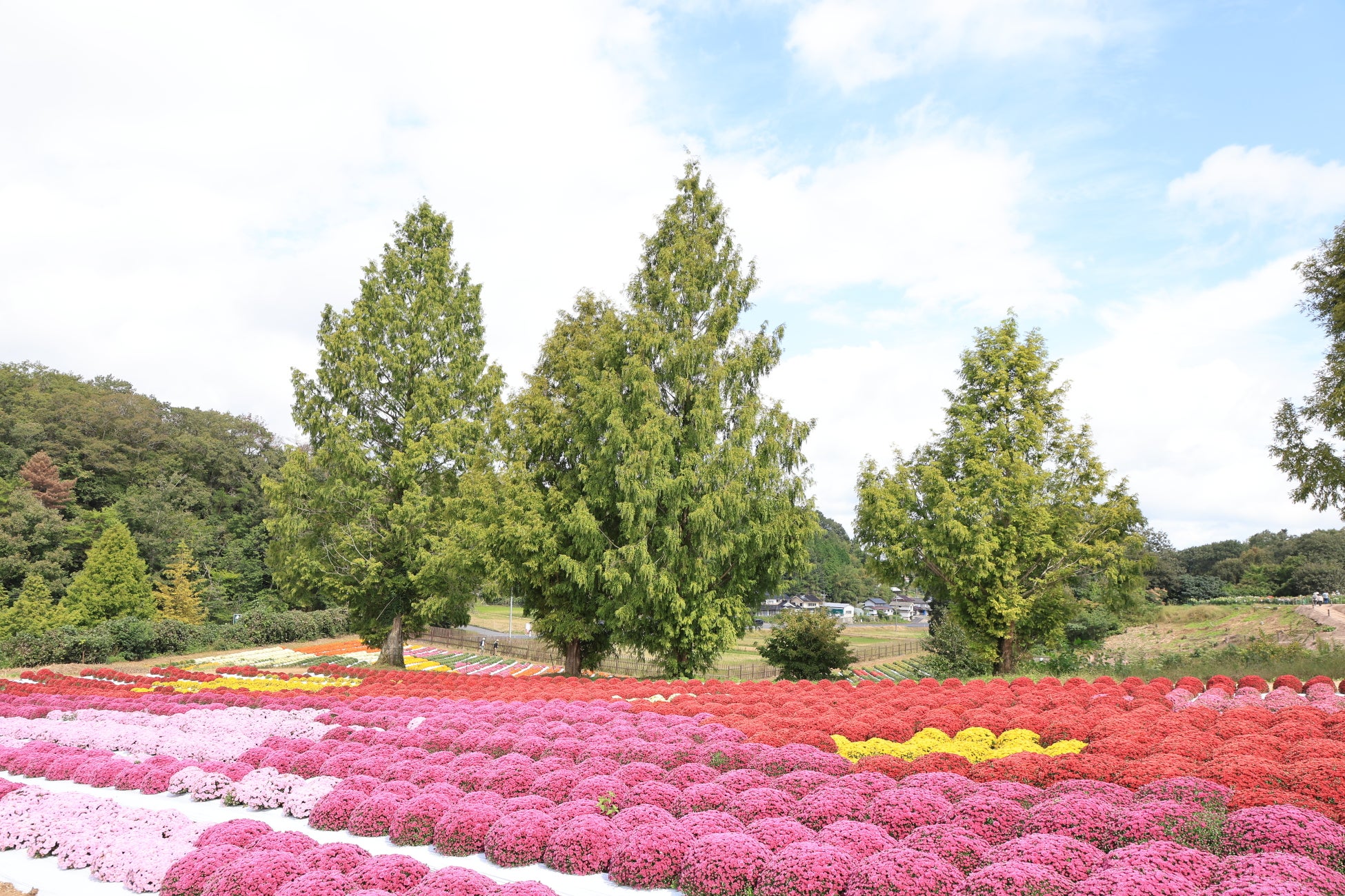 秋の世羅高原農場では、豪華絢爛なダリアと極彩色のガーデンマム畑で一度見たら忘れられないような絶景をお届けします。多種多様なダリア、可愛らしいフォルムのガーデンマムで心彩るひとときをお過ごしください。