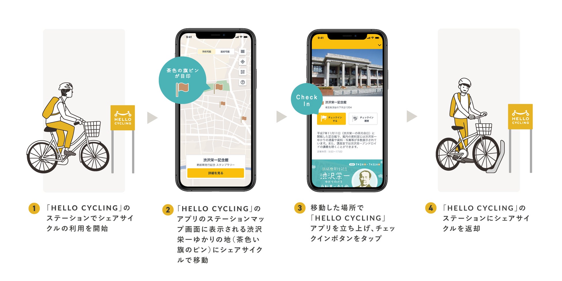 OpenStreet株式会社(本社:東京都港区、代表取締役社長CEO:工藤 智彰、以下「OpenStreet」)は、埼玉県深谷市でシェアサイクルサービス「HELLO CYCLING」のサービスを2024年7月2日に開始し、深谷駅 東側駐車場にてステーションを設置することをお知らせします。さらに、同日から7月31日まで、「HELLO CYCLING」を利用した「新紙幣発行記念!渋沢栄一ゆかりの地を自転車で走るスタンプラリー」(以下、本キャンペーン)を実施します。