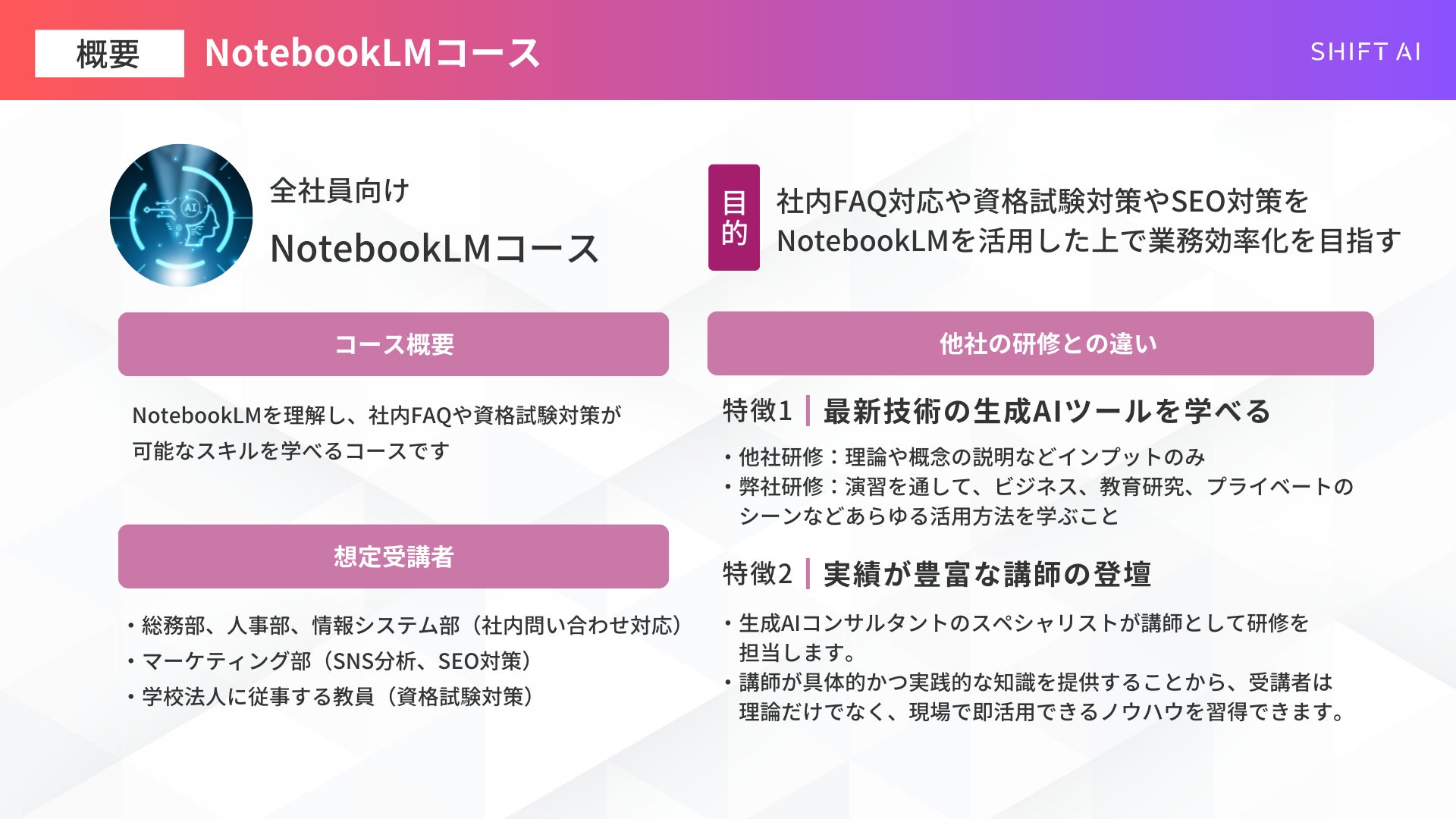 法人向け生成AIリスキリングサービス SHIFT AI for Biz2025年2月17日より新たにNotebookLMコースを提供開始