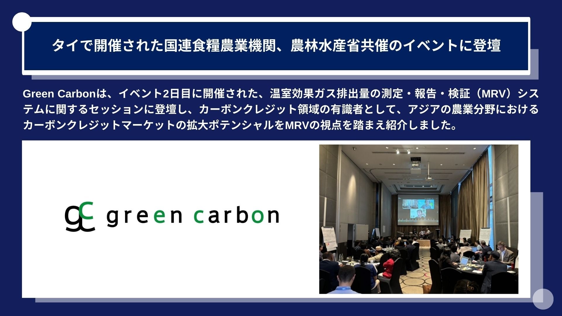 Green Carbon株式会社は、タイで開催された国連食糧農業機関、農林水産省共催のイベントに登壇