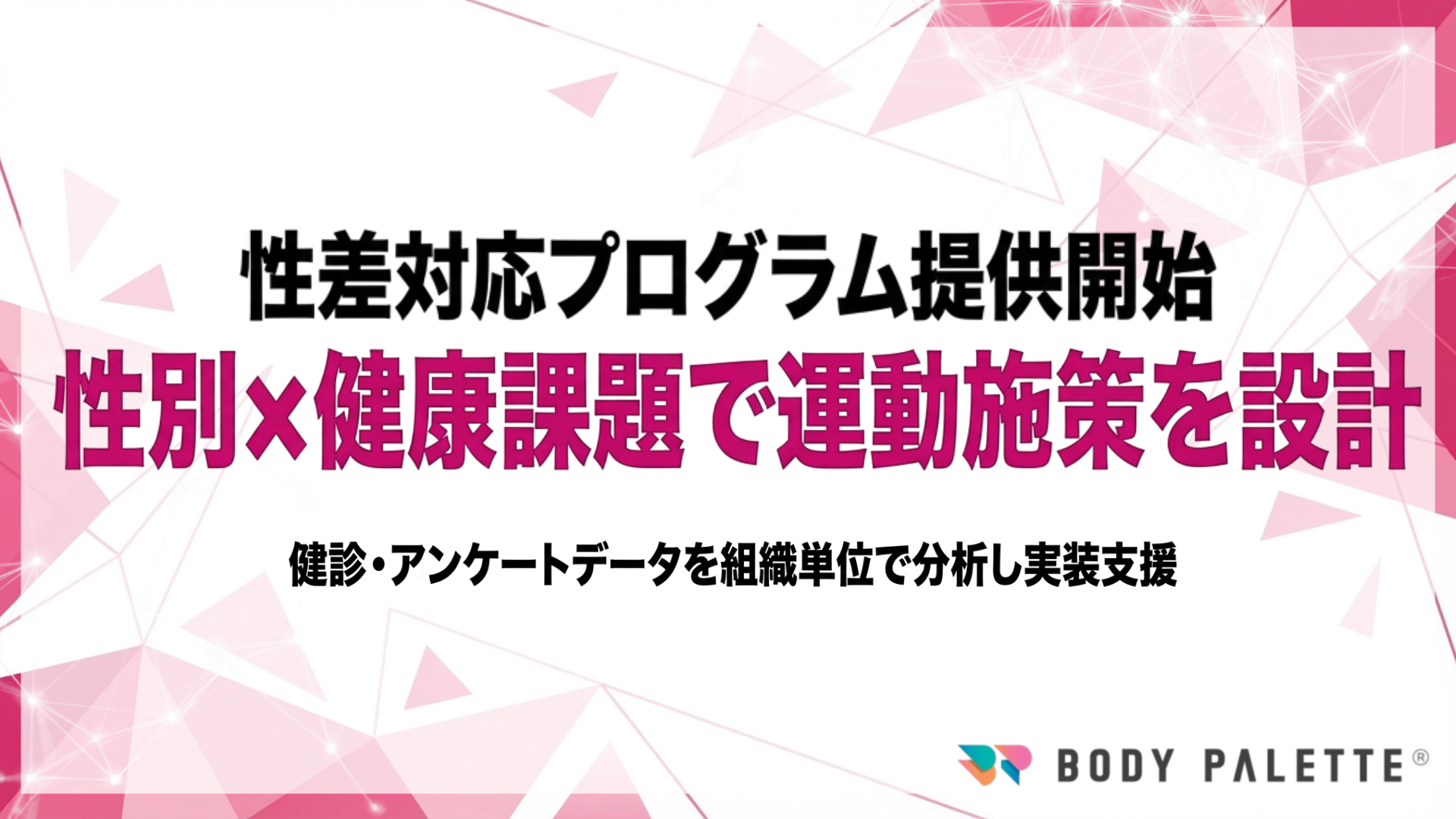 【性差対応の健康支援を実装】BODY PALETTEが性別×健康課題の分析に基づく運動プログラム設計の提供開始