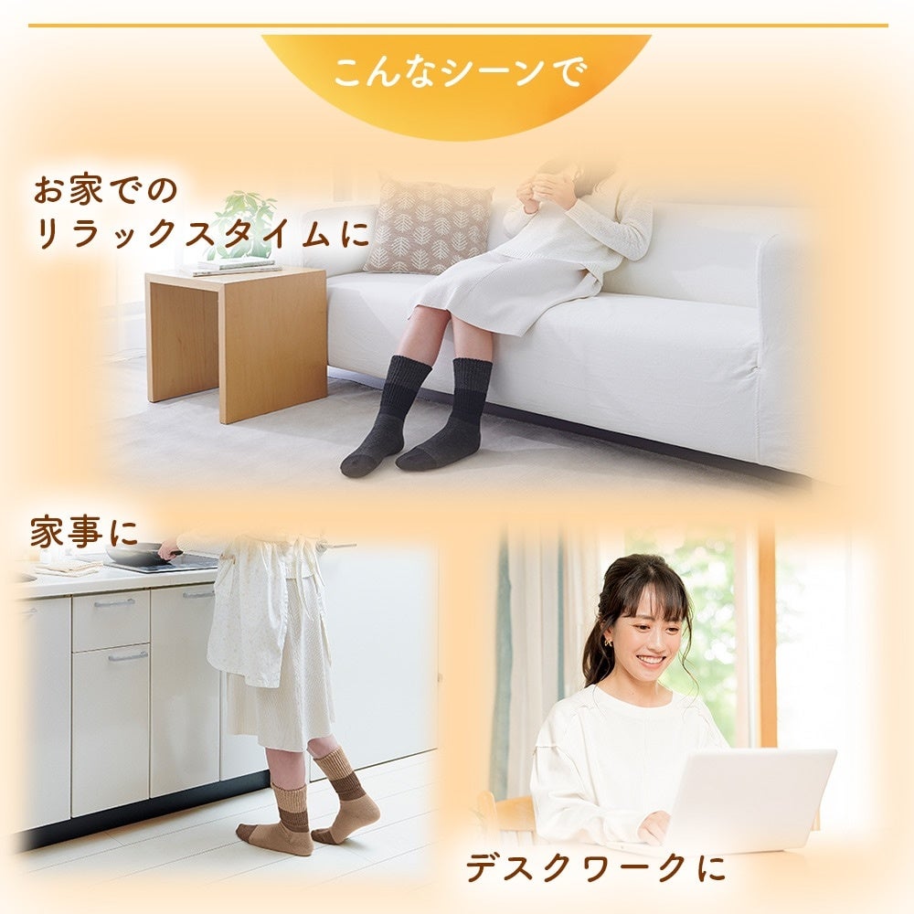 足首にある三陰交部分を2重構造でしっかりあたため、体温を効率よく蓄えながら冷えやすい足先までぽかぽかにします。