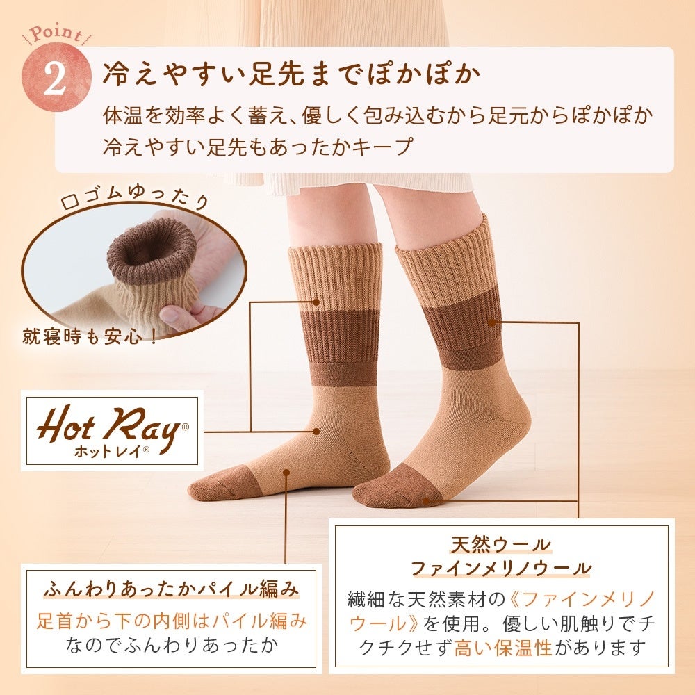 ファインメリノウールとホットレイ®を使った厚手靴下で寒い日も快適に過ごせる「足先まであったか厚手靴下」新発売!