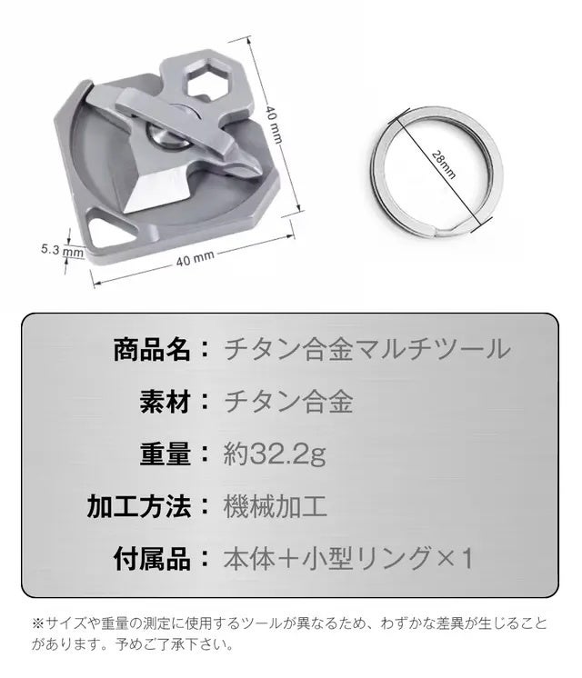 このマルチツールは、チタン合金素材を使用しており、非常に軽量でありながら、高い強度、優れた耐熱性、耐腐食性、そして低温性能を兼ね備えています。