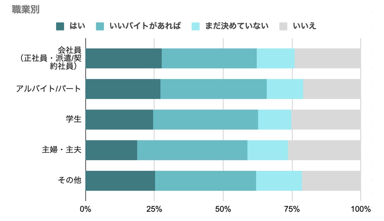 いずれの職業においても、「いいバイトがあれば」と答えた割合が最も高く、条件次第ではたらく希望があることが分かる