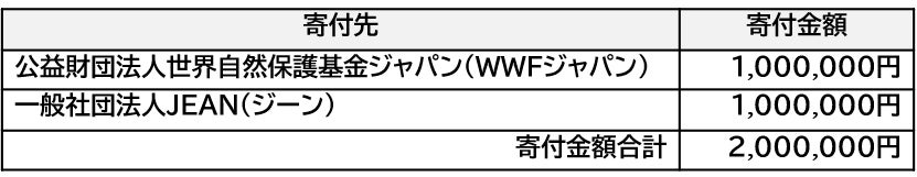 「公益財団法人世界自然保護基金ジャパン(WWFジャパン)」および「一般社団法人JEAN(ジーン)」へ寄付のお知らせ