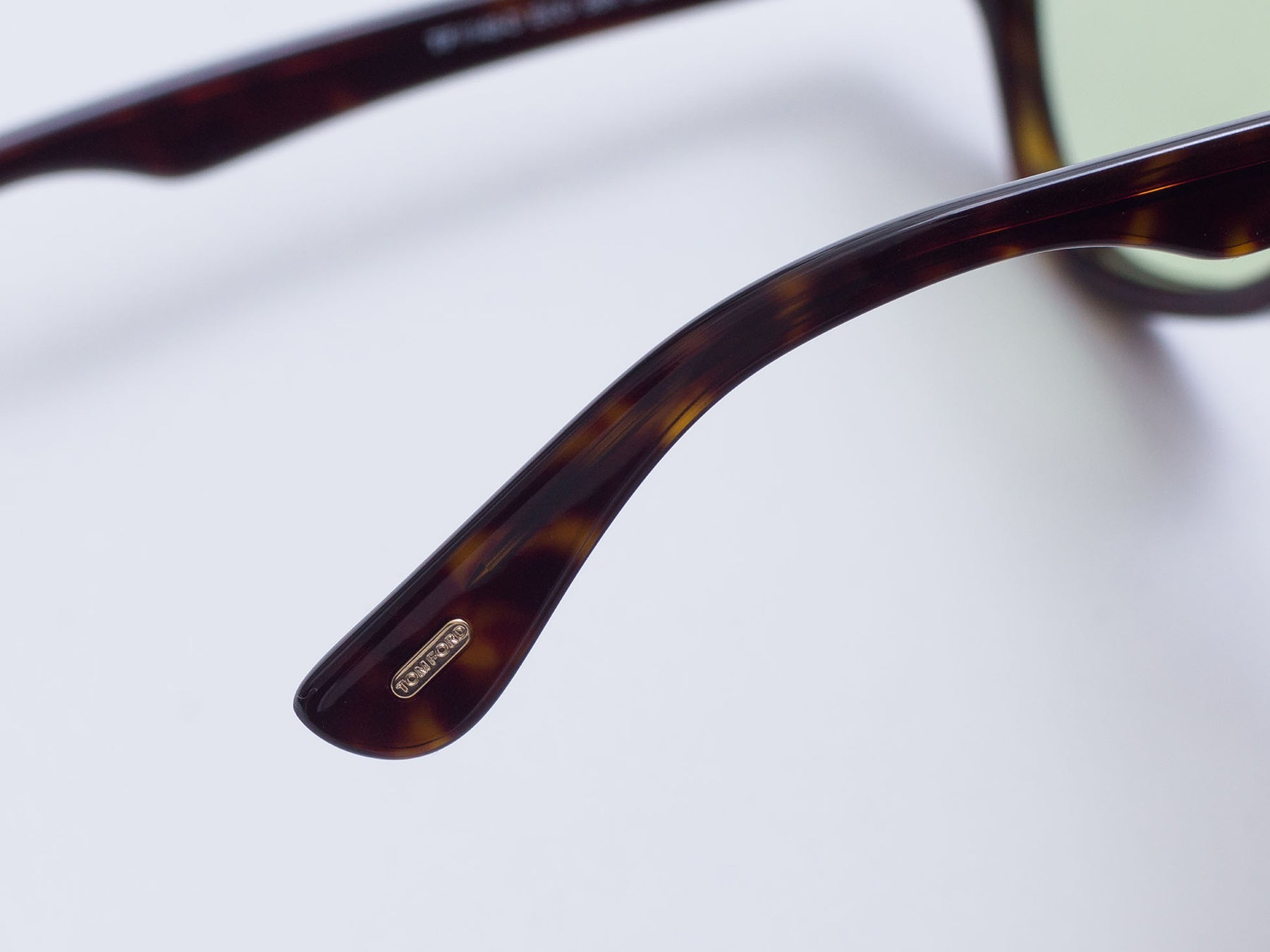 本作は、1849年に創業したイタリアの老舗メガネ生地メーカーであるマツケリ社製アセテートを使用した質感の高い素材に、ミドルウェイトに仕上げられた細身のデザインがデイリーに使いやすいジャパンモデルの『FT1149-D』を採用。フレームをクラシカルで上品な雰囲気を持つブラウンのべっ甲で、レンズには日常使いのしやすさを考慮し、自然な風景の色味を損なわず、長時間装着しても目が疲れにくいカラーレンズを採用しました。