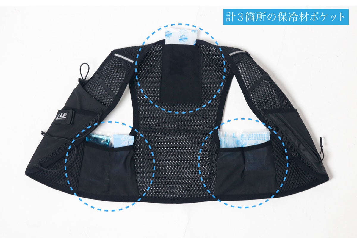 背中と両脇腹の計3か所に、保冷材ポケットを配置。太い血管をピンポイントで冷やすことで、過酷な環境下でも約30~60分間、効率的に体温の上昇を抑制します。熱による心拍数の跳ね上がりを抑え、ペースを維持する質の高いトレーニングが可能に。夏場に陥りがちな疲弊するだけの走りを、秋のレースに直結するビルドアップや距離踏みへと進化させます。