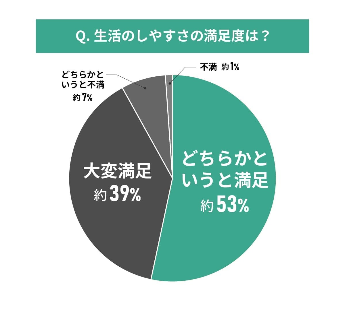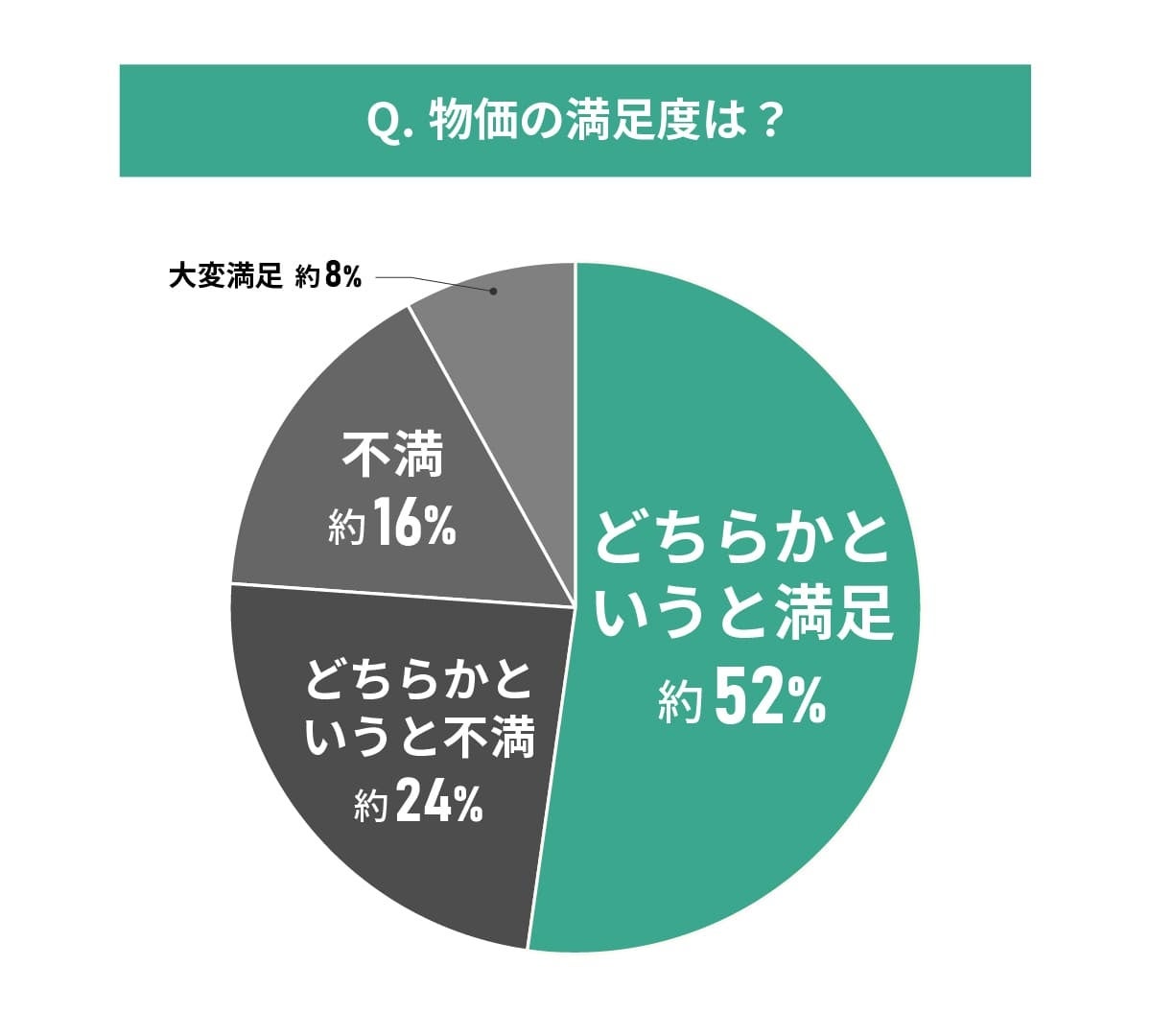 物価については約60%の住民が満足している一方で、約40%が不満を感じており、意見が分かれる結果となりました。満足している住民からは「都心部と比較すると安い」「下町らしい価格帯の店が多い」「家賃が23区内では比較的安い」といった声が聞かれます。