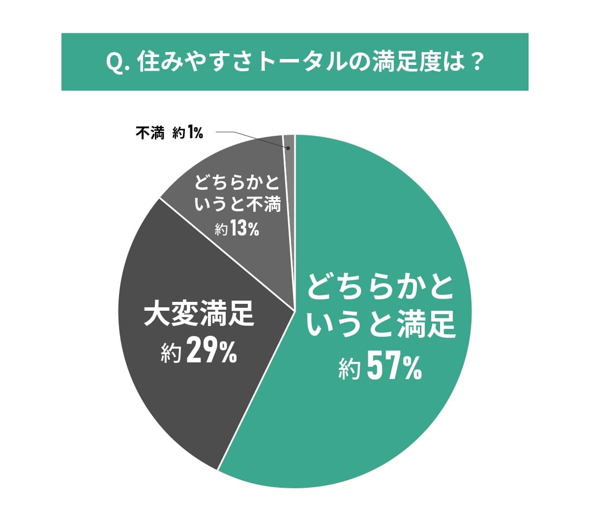 わずかながら不満を感じる住民からは「災害リスクが心配」「商業施設の充実度にばらつきがある」「交通の便で改善の余地がある」といった声が聞かれますが、全体的には非常に高い満足度を示しており、バランスの取れた住みやすい街として評価されていることが分かります。