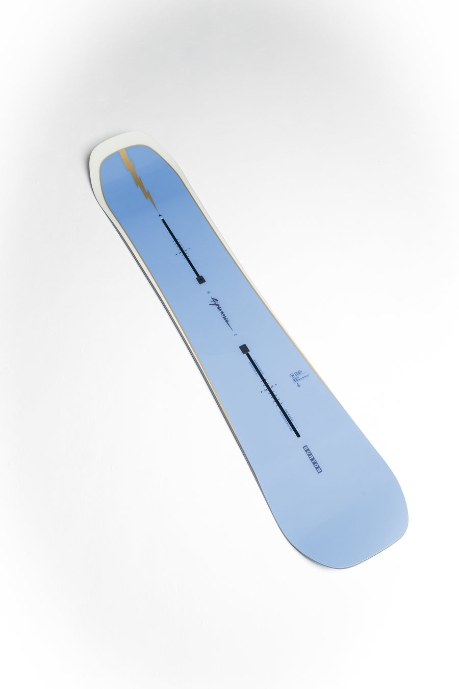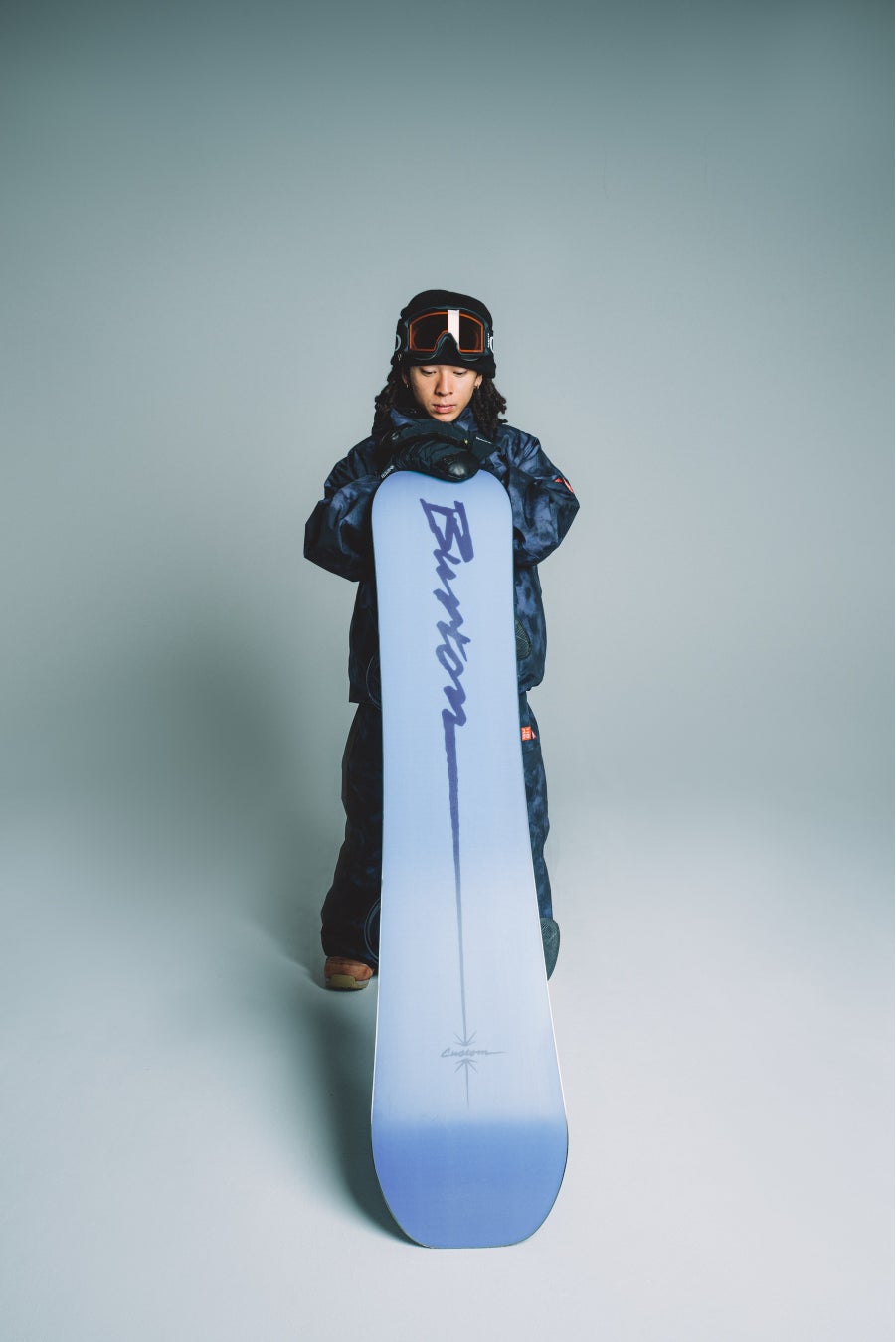 元々好きな色であるブルーの中で、90年代の雰囲気が漂う“薄め”の青を選びました。この年代のカルチャーは特に好きで、例えばヒップホップなどの音楽は、この時代の言葉や感情の表現といったところにすごく興味があり、大きなインスピレーションを受けています。自分自身(1998年生まれなので)リアルタイムではないのですが、その時代のファッションだったり、当時のスノーボードのソールデザインだったり、自分のスタイルに取り入れたいトーンなので、今回の特別なボードにもこの“薄めのブルー”を選ばせてもらいました。