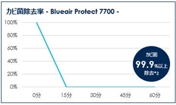 (※2)【試験機関】Guangzhou CAS Test Technical Services Co., Ltd.【試験方法】30㎥の試験空間でGB規格(GB/T 18801-2015)による性能評価試験にて実施。【対象】浮遊した1種類のカビ菌【試験結果】60分で99.9%以上抑制。【試験機運転条件】Protect 7700を「スピード3」で運転。