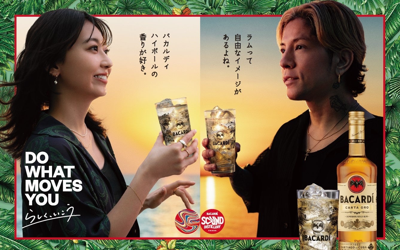 Kj (Dragon Ash / The Ravens)と鈴木真海子が登場するバカルディハイボールの新広告ビジュアルも本日公開。
