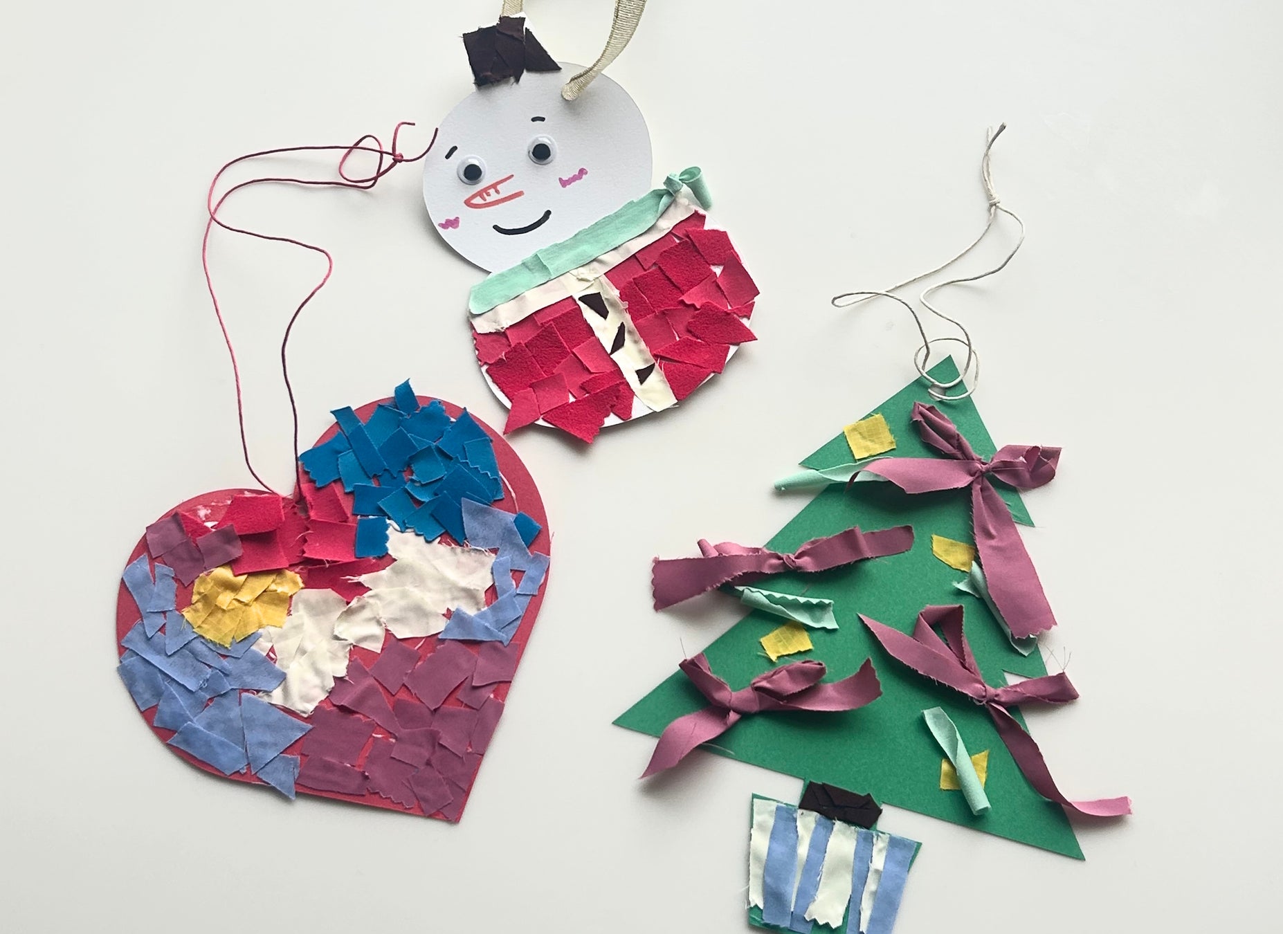 エコペット®の端切れを貼って、オリジナルのクリスマスオーナメントをつくる簡単なワークショップ。使用済みペットボトルなどをリサイクルしてできたエコペット®がどんな繊維なのか触りながら、楽しくリサイクルについて考えてみて。
