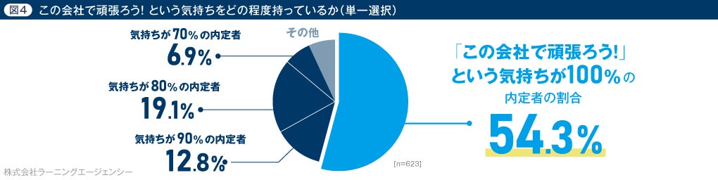 4.「この会社で頑張ろう!」という気持ちが100%の内定者は約半数