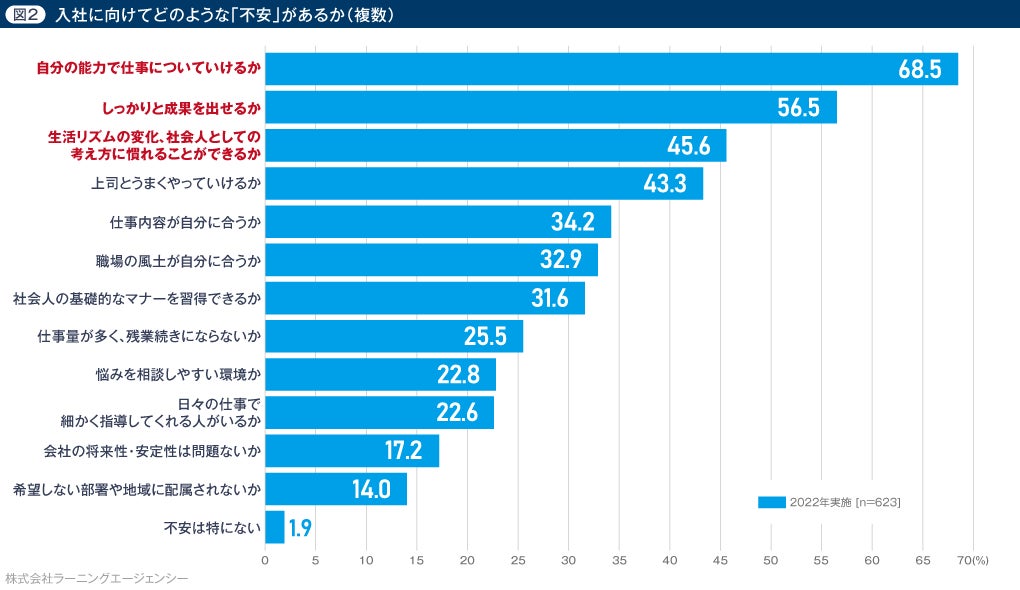 2.内定者の約7割が「自分の能力」に不安。上司との関係や職場風土を上回る