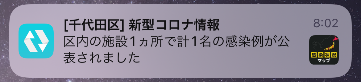 3. プッシュ通知で設定地域内での新たな感染事例の追加情報を受け取れます