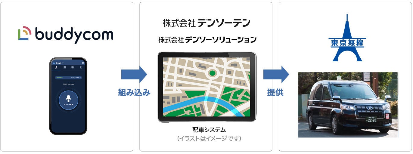 Buddycom、デンソーテンの配車システムに搭載され、東京無線の全タクシーで採用