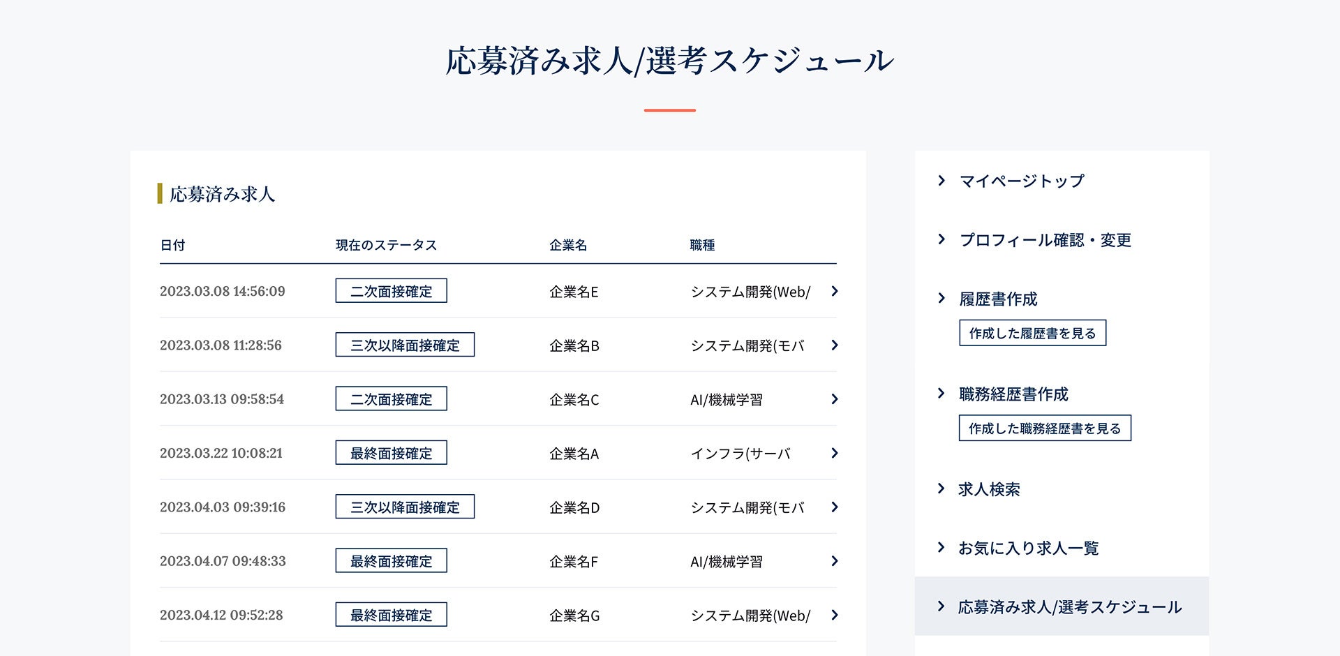 これにより、プロフィールや職務経歴書の作成・アップデートや、お気に入り求人の登録、応募や選考状況の確認がマイページ上で全てできるようになるため、利用者はよりスムーズに転職活動を進めることが可能になります。
