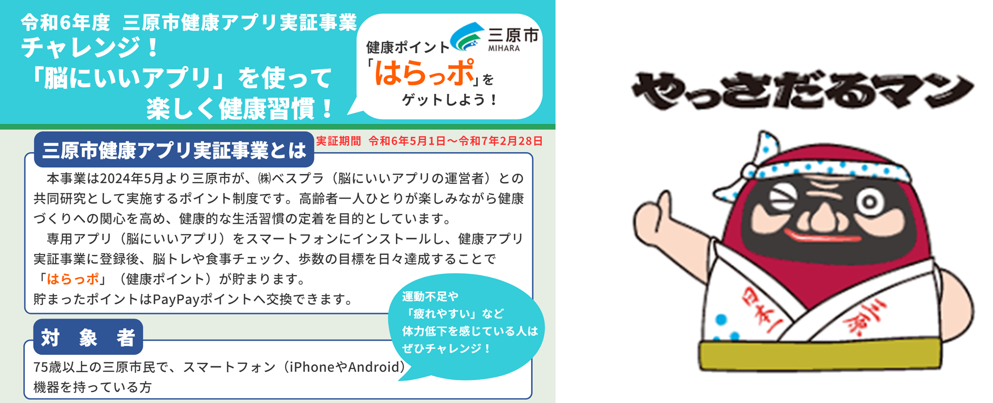 【三原市:75歳から始める! スマートフォンを使った健康アプリ実証事業について】