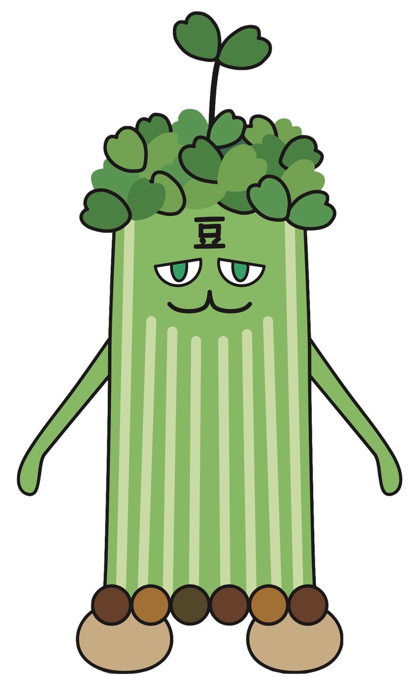 豆苗の妖精。切っても切っても伸びてくる、あきらめない性格。1本伸びた長い芽がチャームポイント。