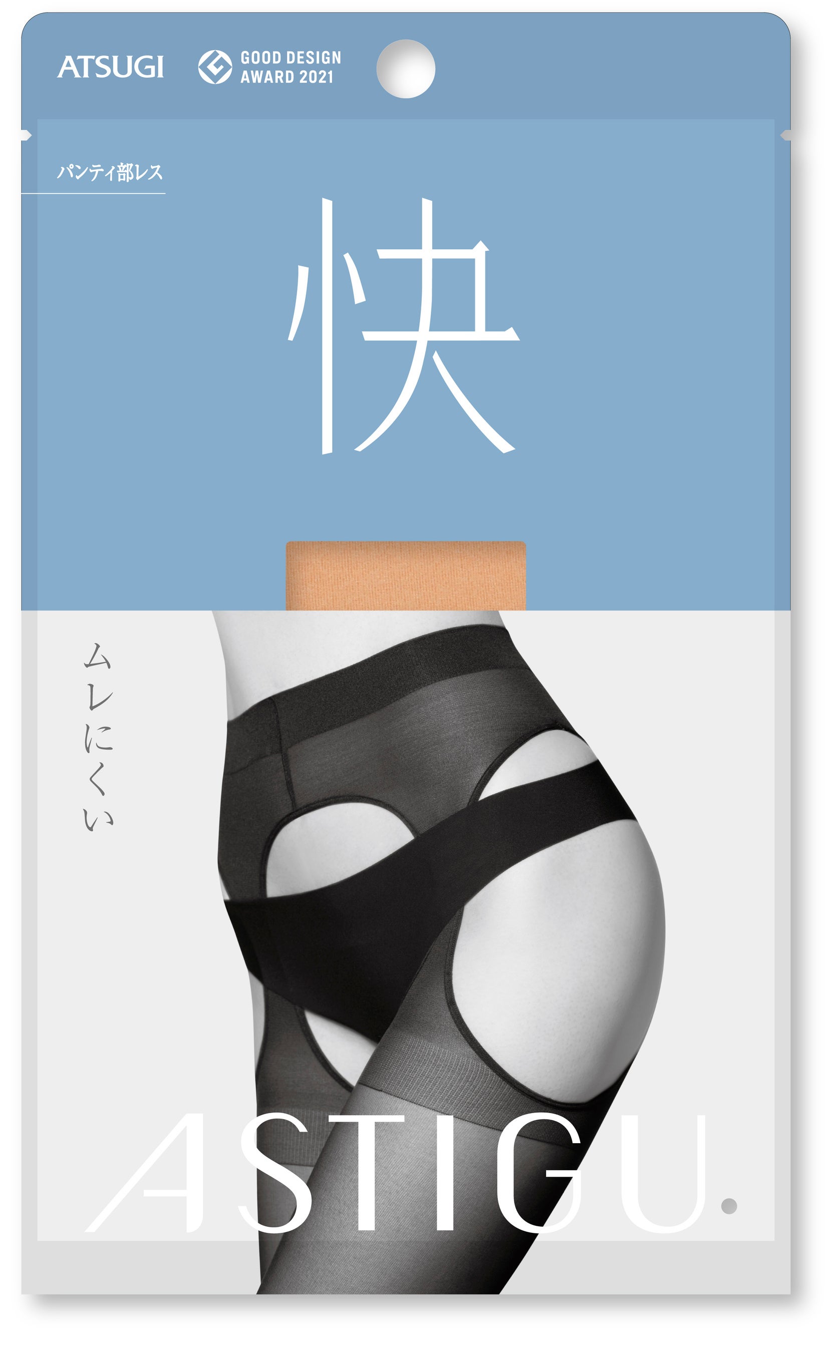 アスティーグ【快】は、パンティストッキングでありながら、パンティ部を大きくくりぬいたもので、この商品を身に着けた上からショーツ類を着用します。パンティ部の生地が無いので蒸れにくいことや、涼しいことに加えて、お手洗い時にストッキングの上げ下ろしをせずに、ショーツだけを下げれば済む手軽さがベネフィットの商品です。生理用品の取り換えなどでお手洗いの回数が増えるサニタリー期こそ大変役立つ商品であることから、今シーズンはフェムテック商品としてもお薦めしています。是非一度お試しください。商品について、詳しくはこちら https://www.astigu.jp/lineup/kai.html