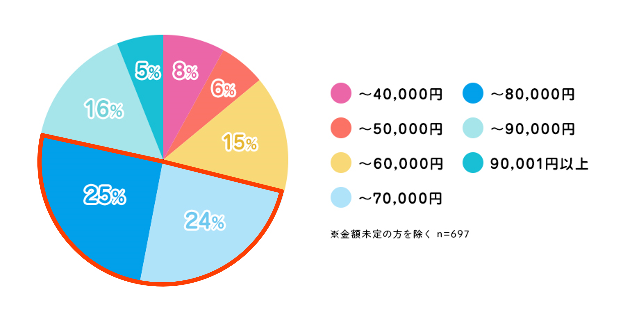 ●全体の約半数が60,001円~80,000円までの価格帯を購入