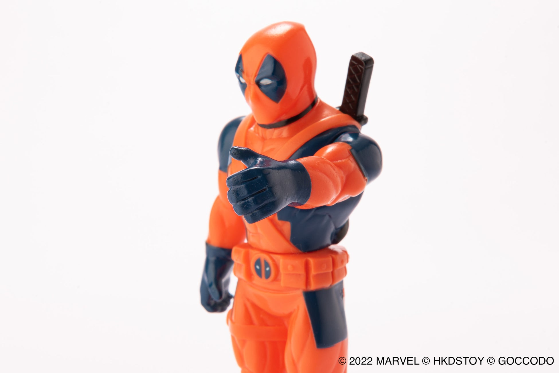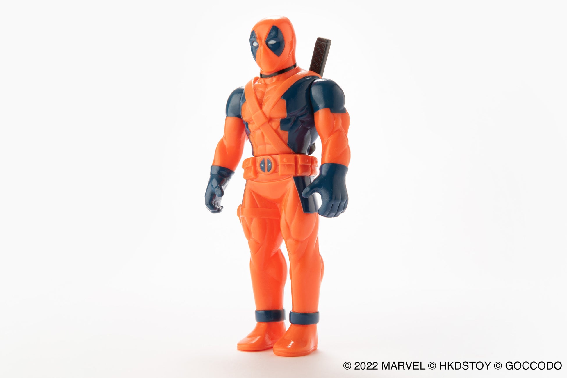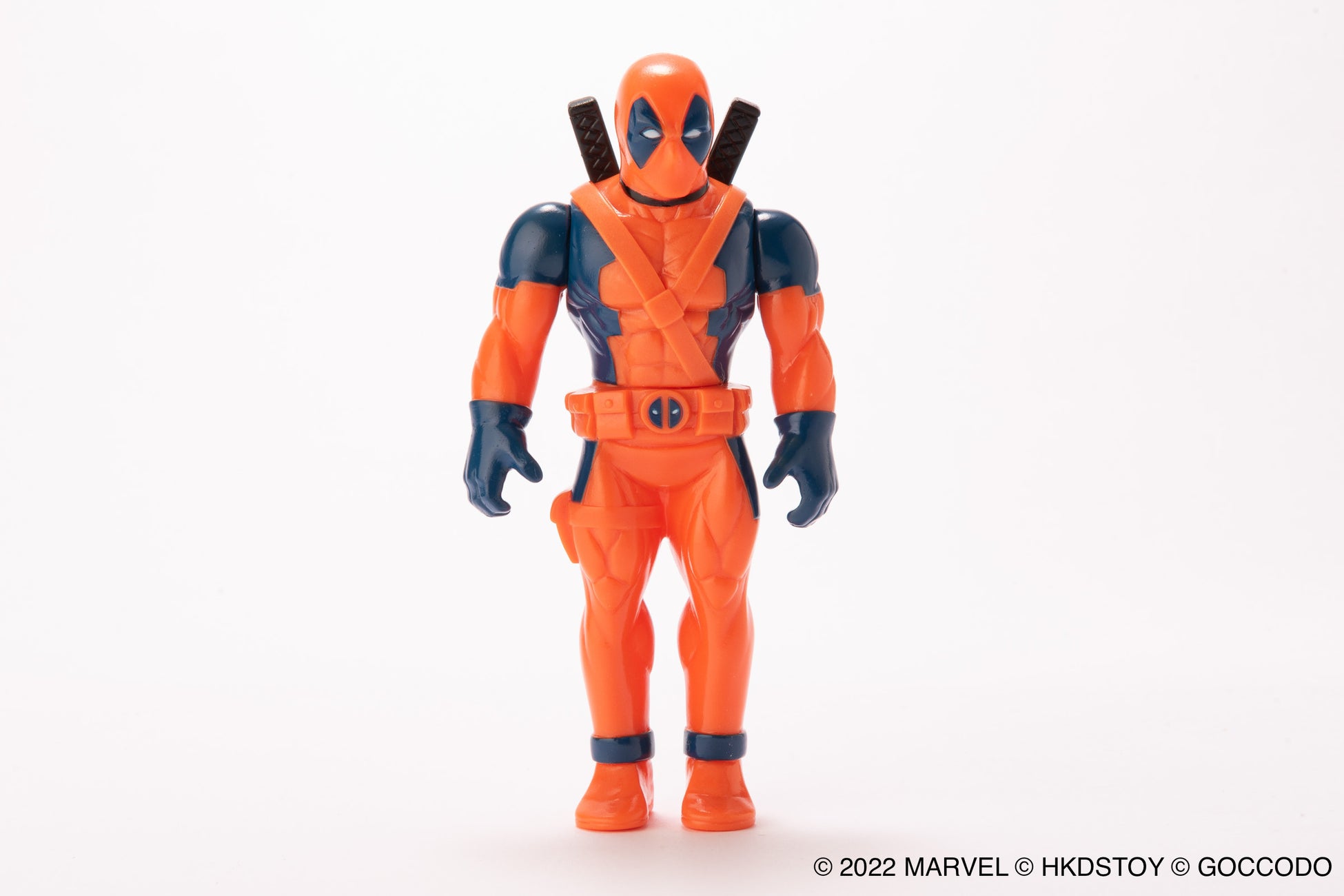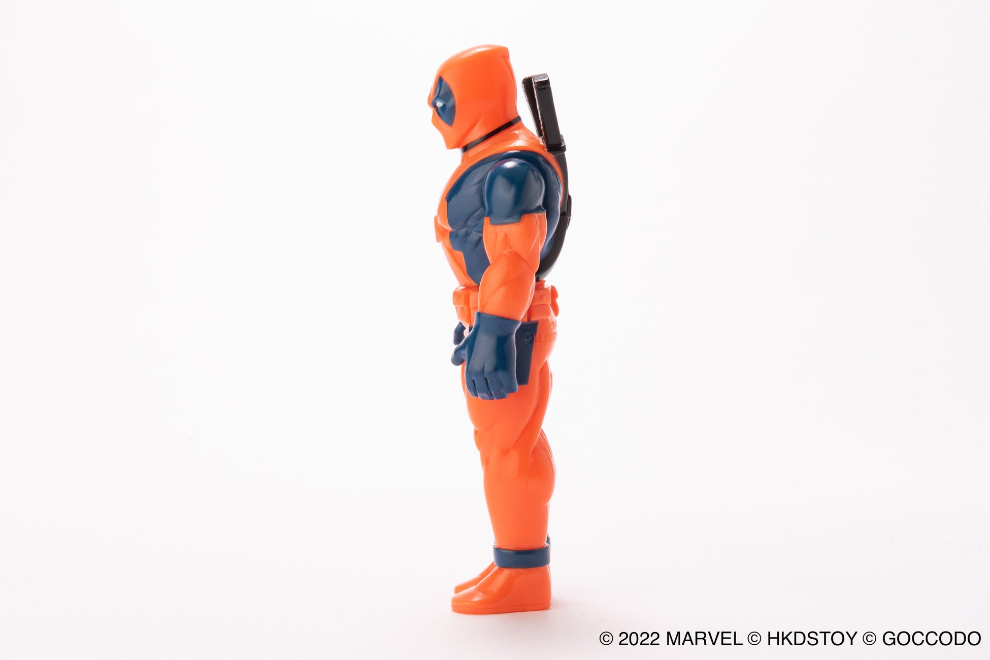 HKDSTOY×ゴッコ堂 のタッグによる MARVEL 日本製ソフビの新作、コミックス版のレトロなカラーリングをイメージした [オレンジレッド/ネイビー] カラーのデッドプール。