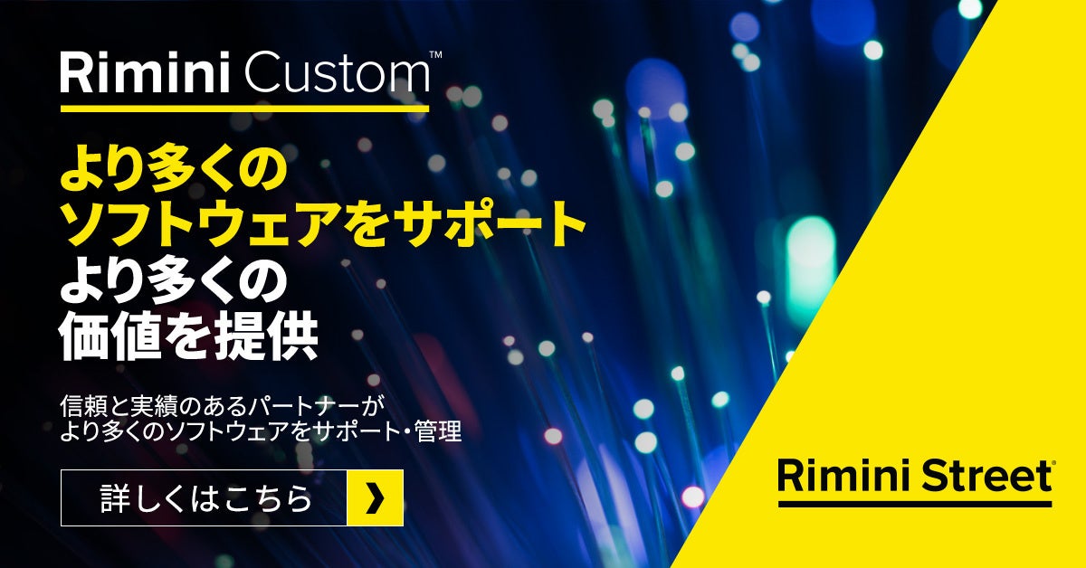 Rimini Customで得られるメリットの詳細については、こちら(https://www.riministreet.com/jp/solutions/support-services/rimini-custom/)をご覧ください。