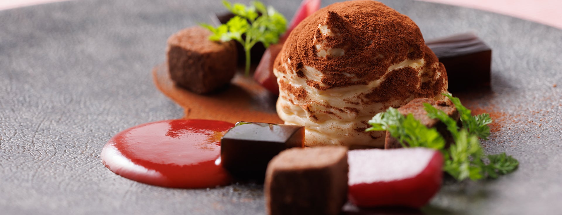 エスプーマ仕立てにし、アールグレーを香らせた、フワッとした新しいティラミスの味わいです。