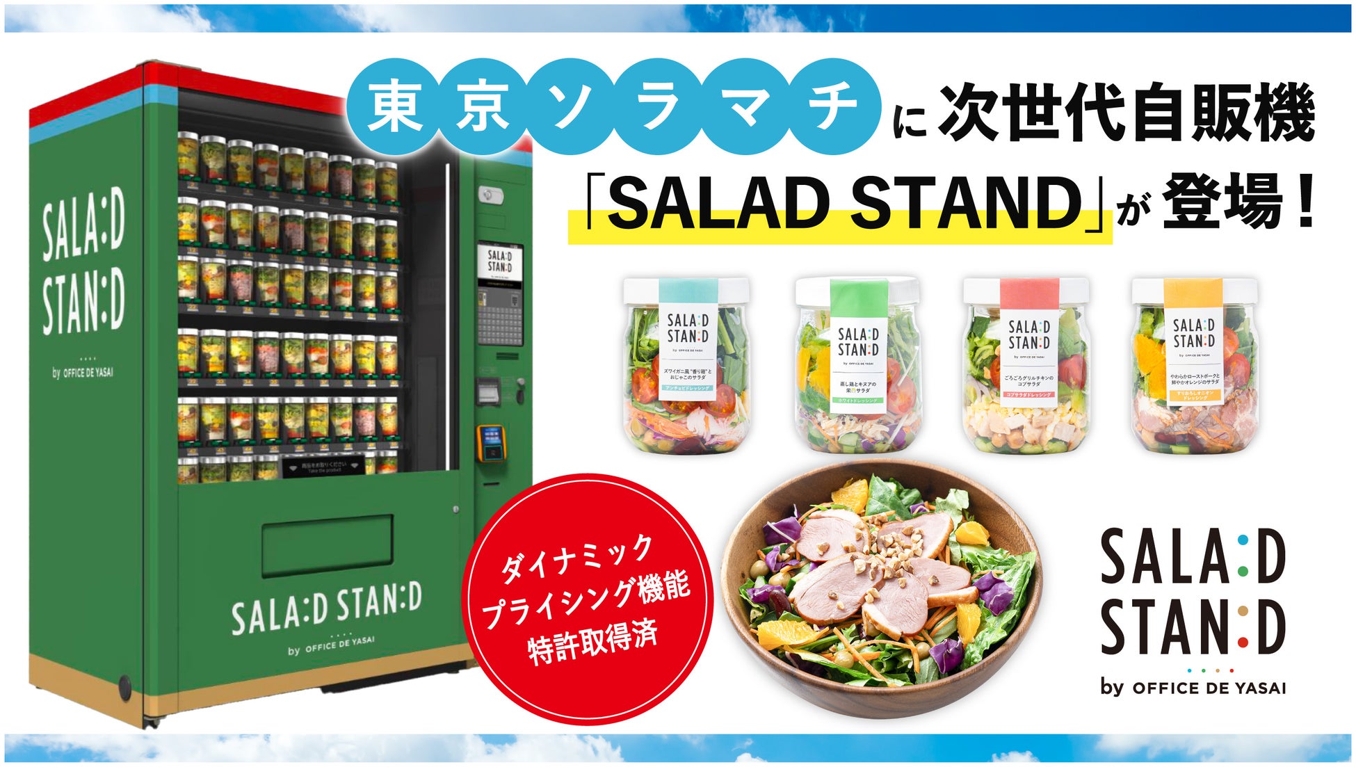 株式会社KOMPEITO(東京都品川区、代表取締役CEO 渡邉瞬)が運営する「SALAD STAND(サラダスタンド)by OFFICE DE YASAI」は、新たに墨田区押上の商業施設「東京ソラマチ®」への設置が決定しました。新鮮なサラダをはじめとした健康的でバリエーション豊かな商品を、2025年4月16日(水)より販売開始いたします。
