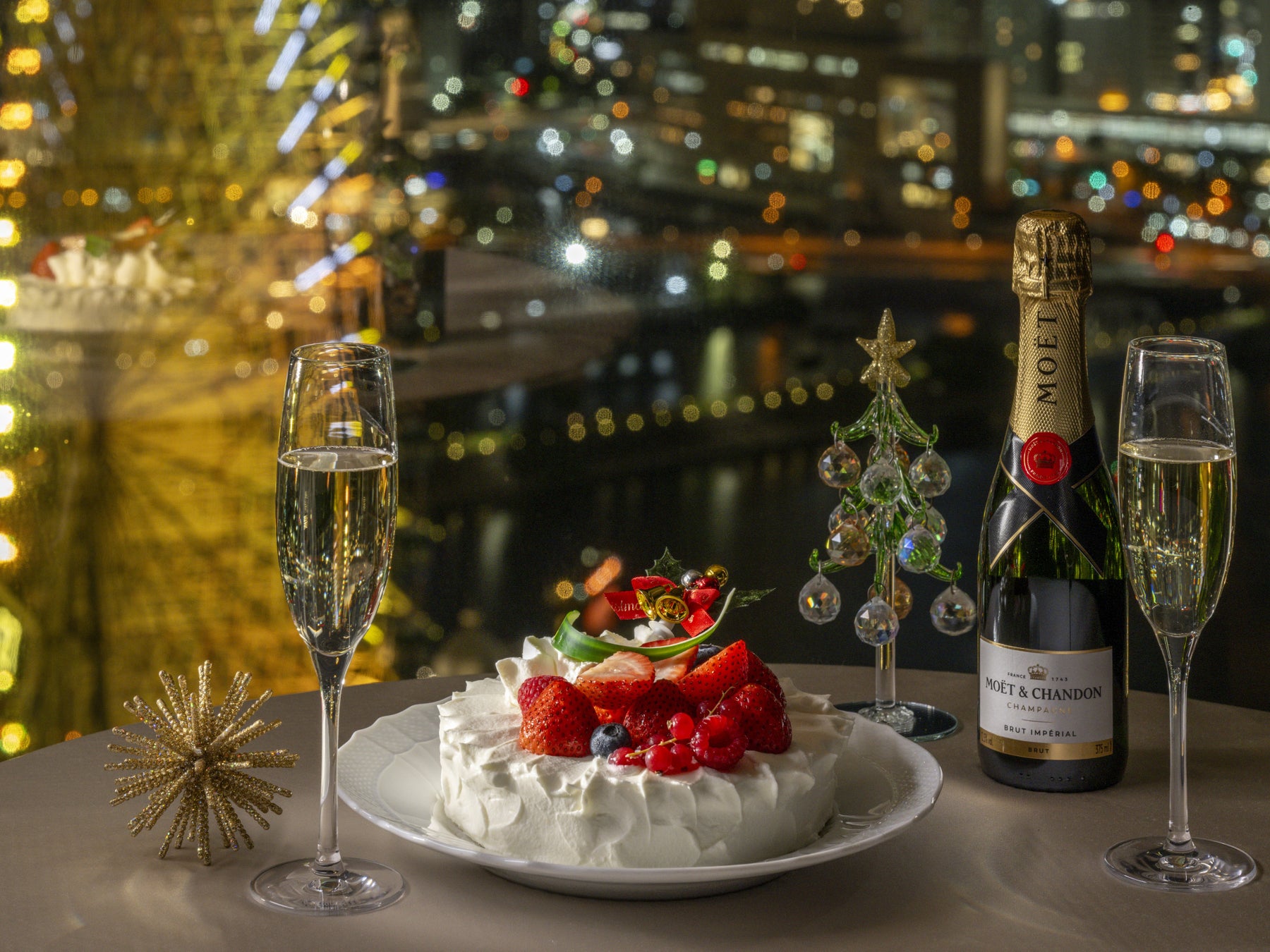 窓から見える横浜の夜景を背景に、ロマンティックなクリスマスをお過ごしください。