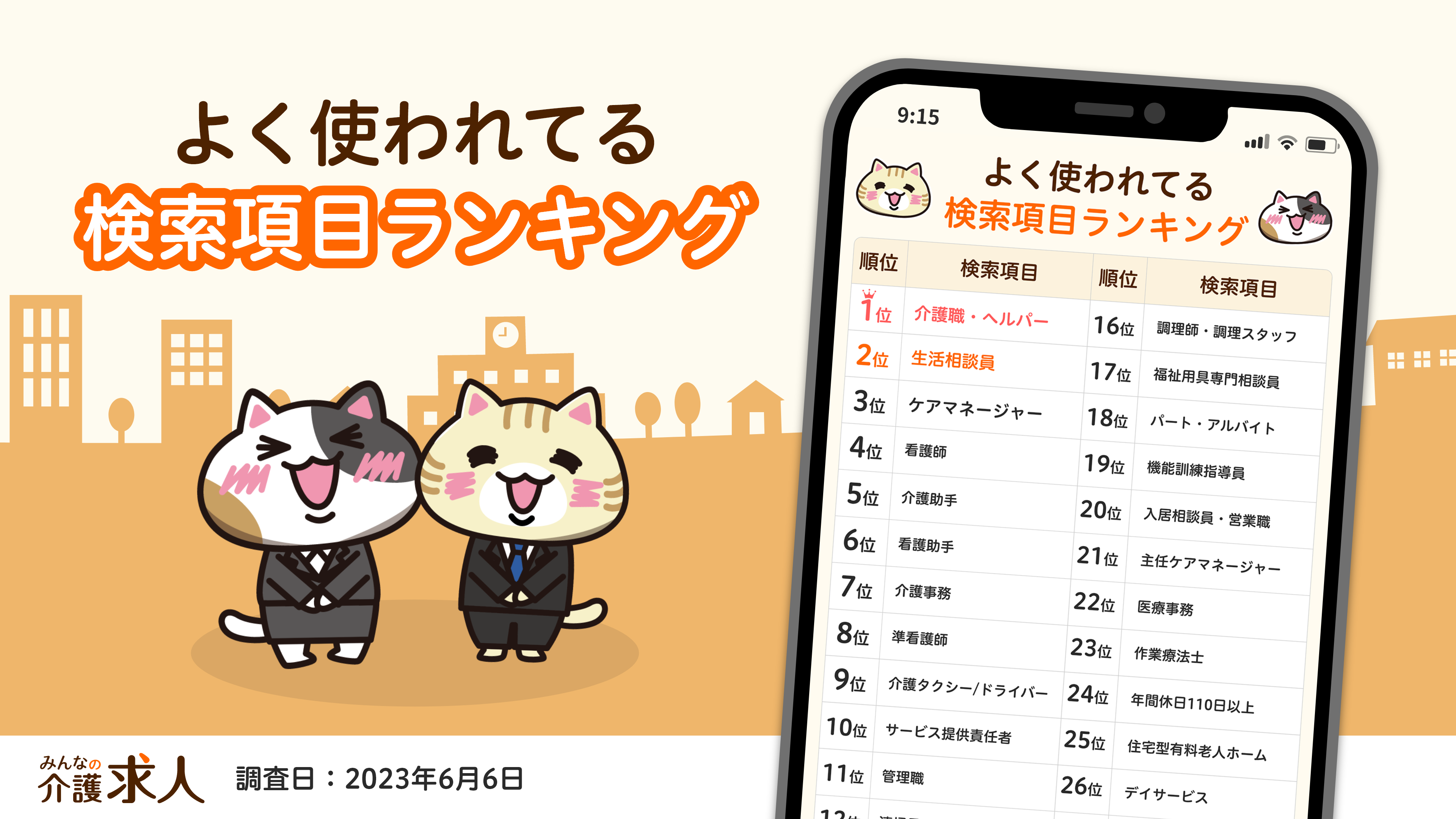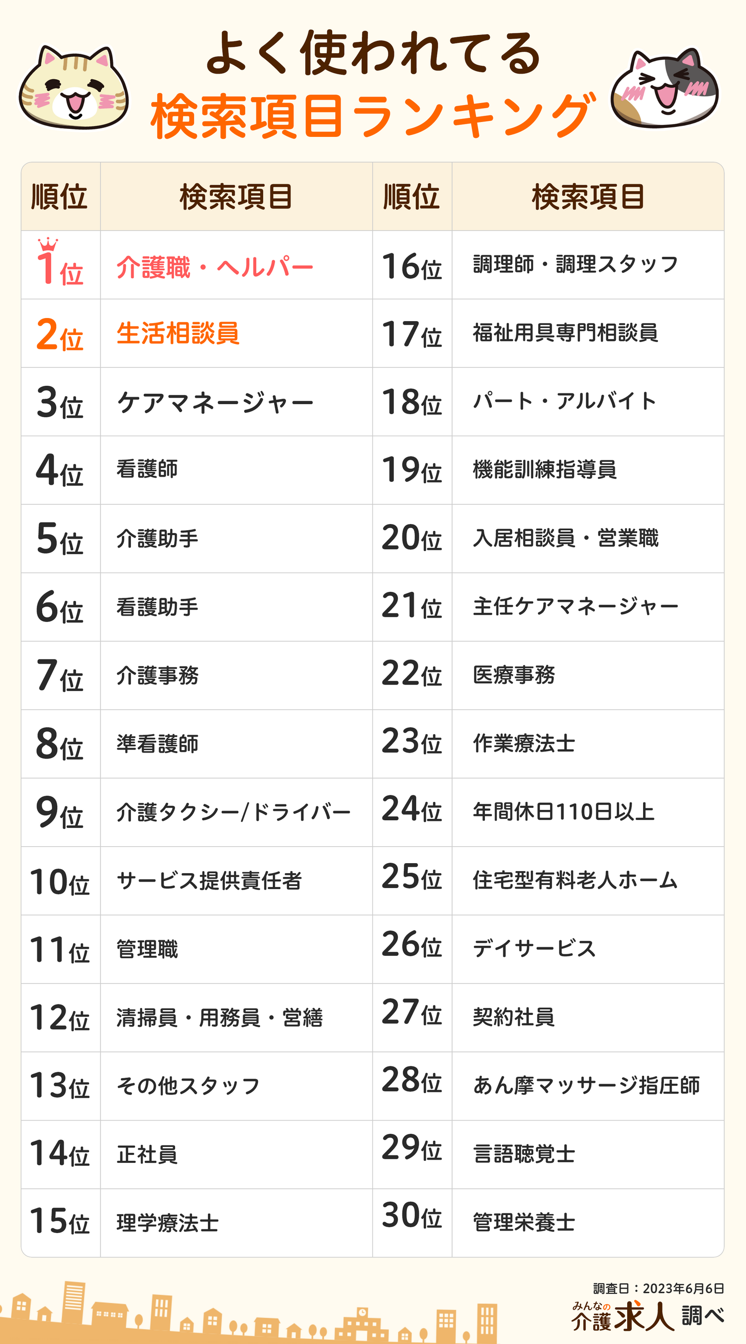 2位に「生活相談員」、3位に「ケアマネージャー」がランクインしました。