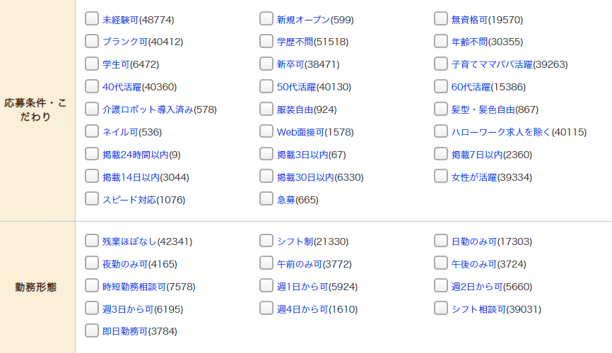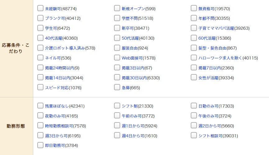 みんなの介護求人では150を超える検索項目を設置しており、ユーザーのニーズに合った求人を検索することができます。