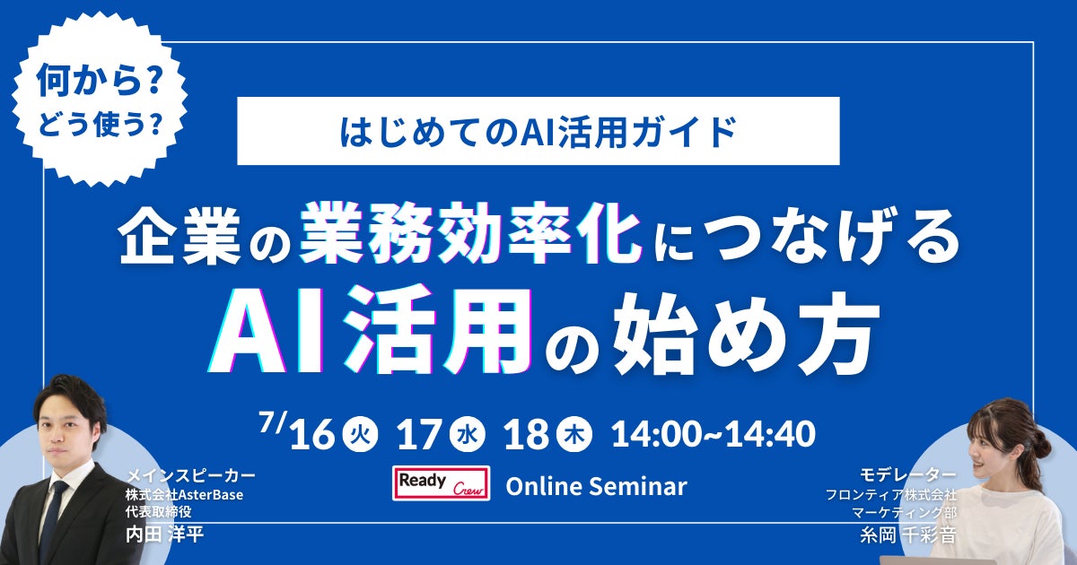 【3日間開催】レディクル×AsterBase 無料オンラインセミナーを開催企業の業務効率化につなげる、AI活用の始め方とは?