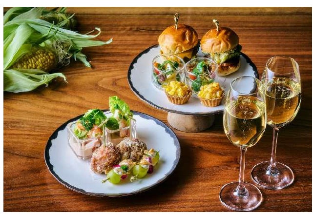 夏の夕暮れ時をグラス片手に優雅に過ごす「サマーアペリティフ」をラウンジエリアにてご用意いたします。とうもろこしを香ばしく焼き上げた「とうもろこしキッシュ」や、夏の旬が楽しめるミニサラダ「トマト 桃 モッツァレラ」、BBQソースとチェダーチーズが効いたミニサイズの「タヴァンスライダー」など、季節の素材を活かしたカナッペ6種とともに、2時間のフリーフロードリンクをお楽しみいただけます。「シャンパーニュプラン」では、シャンパーニュをはじめ赤・白ワインやビール、ミクソロジーハイボール、ソフトドリンク各種をラインアップ。よりカジュアルに楽しめる「スパークリングワインプラン」では、シャンパーニュの代わりにスパークリングワインをご提供いたします。高層階からの夜景とともに、心地よい大人のひとときをお楽しみください。